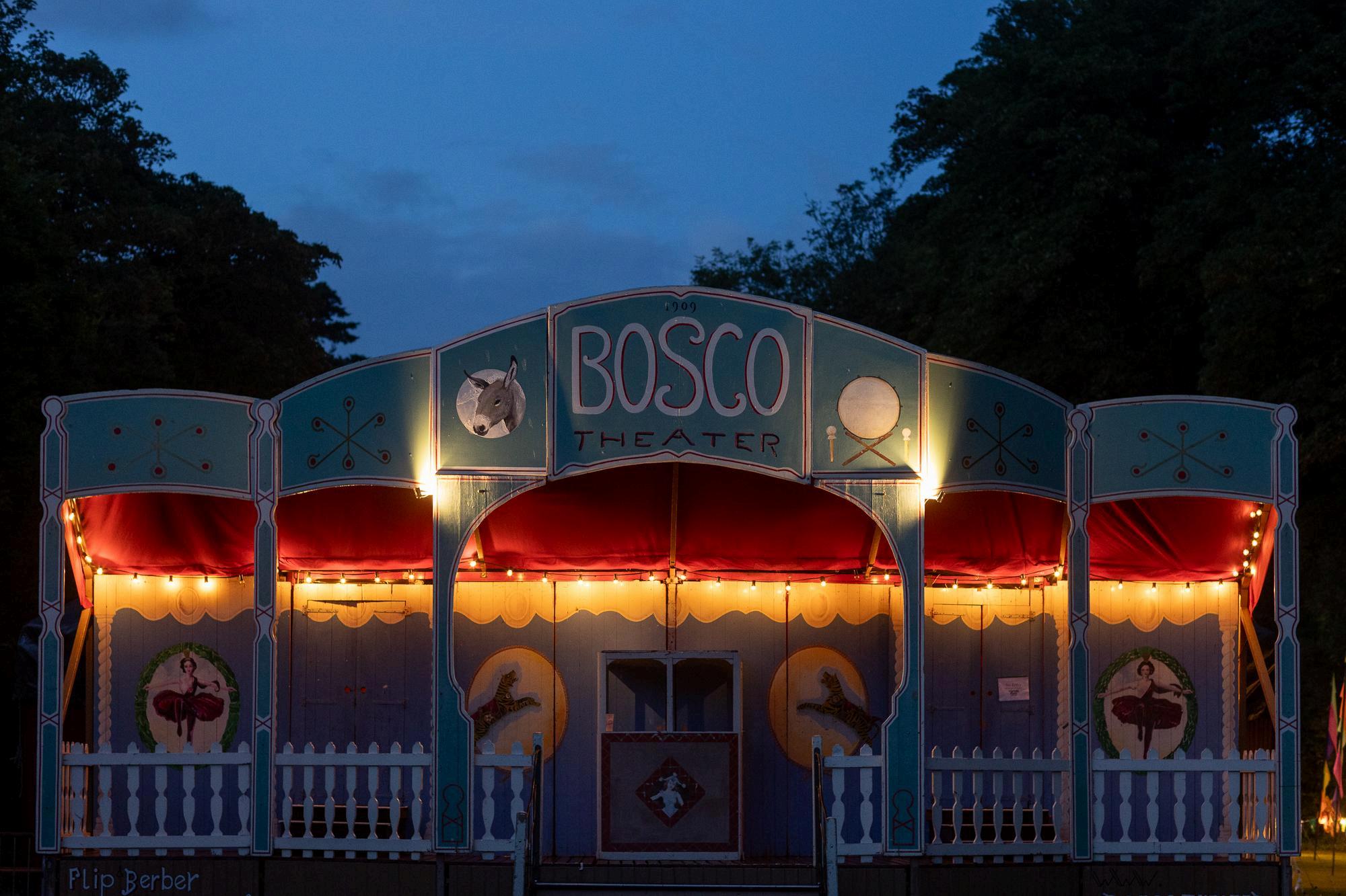 > The Bosco Theatre sits in the heart of the Fringe Village, close to the main entrance of Ventnor Park. It is an original Dutch "Kermis-circus" tent which was built in 1909. It was used by the Ophof family who performed their own family circus in it.