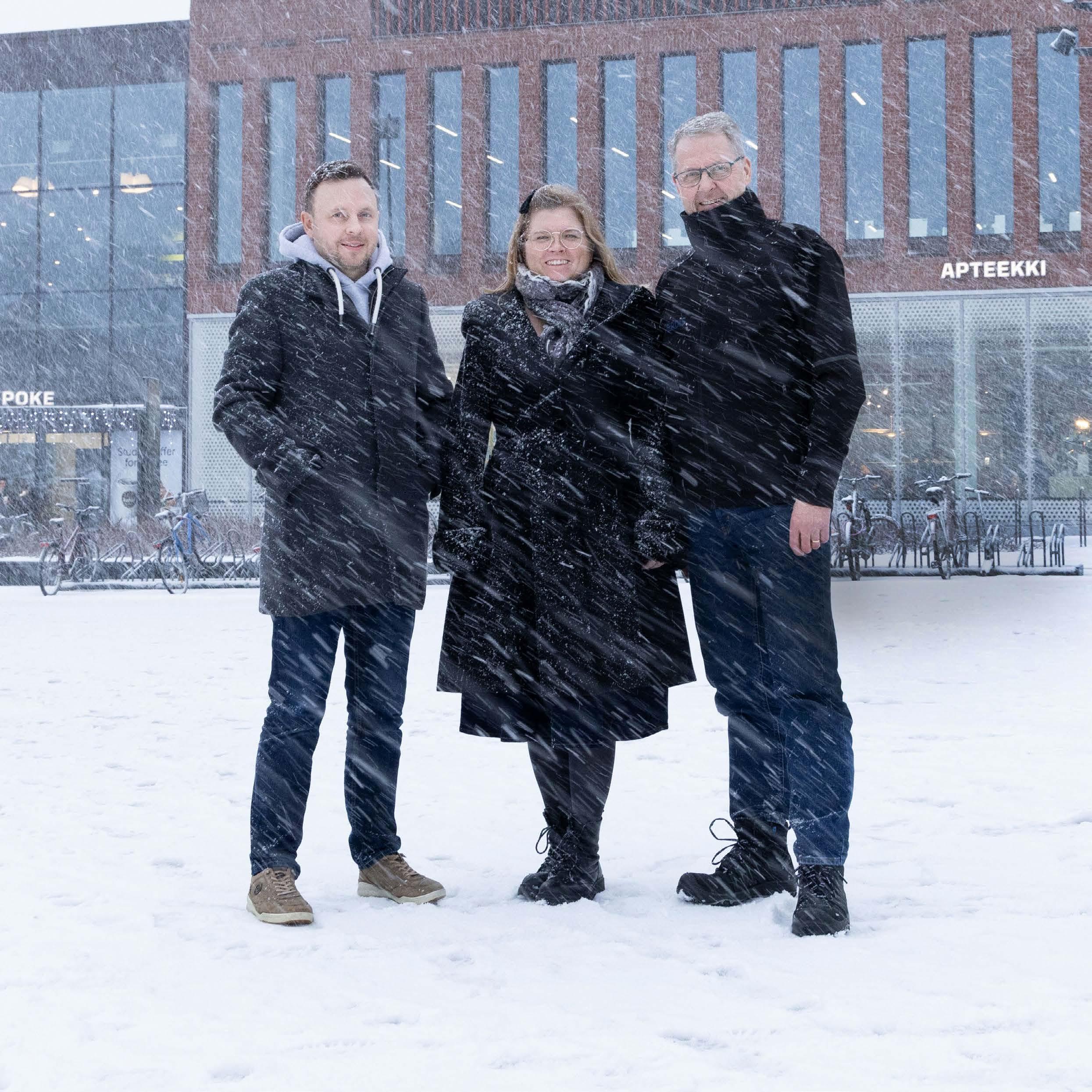 ACREn Jukka-Pekka Salmisto (vas.) ja Tanja Pietikäinen sekä Verdiksen Tero Tykkyläinen tietävät, miten tärkeää toimiva yhteydenpito on jätehuollon arjessa ja kehittämisessä.