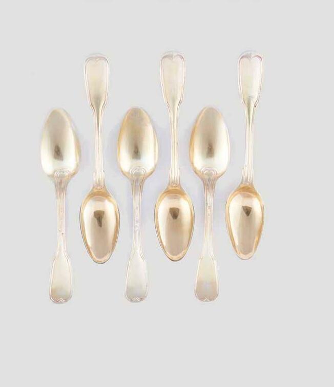 Prata dourada Francesa Fabricante TÉTARD Frères, com decoração de friso de folhagem finamente cinzelado no bordo Punções: Minerva 1º Título, mestre ourives (em bom estado, sinais de uso)