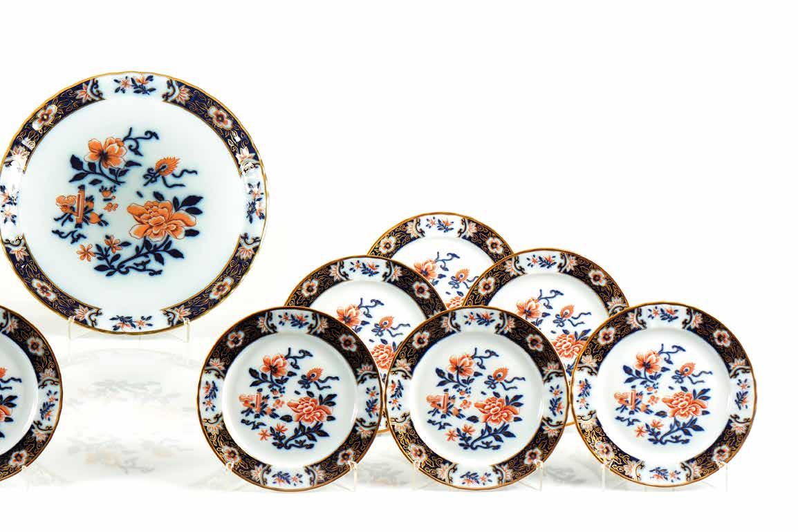 Monogramados B.M. com filetes dourados e bastões de marechal cruzados policromados Marcados Jacquel et de Hebert Frères, 3 rue de la Paix à Paris Período Segundo Império. (4 em muito bom estado, 4 com desgastes)