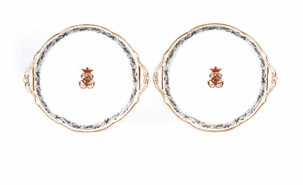 Porcelana branca recortada com realces a ouro, pertencentes ao Grande Serviço do Marechal Bernard MAGNAN.