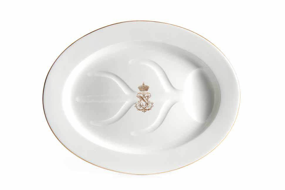 Scalloped white porcelain with gold highlights, belonging to the Great Service of Field Marshal Bernard MAGNAN.