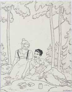 “Les clowns” Guache sobre papel Assinado 50x39 cm Com um pequeno estudo no verso