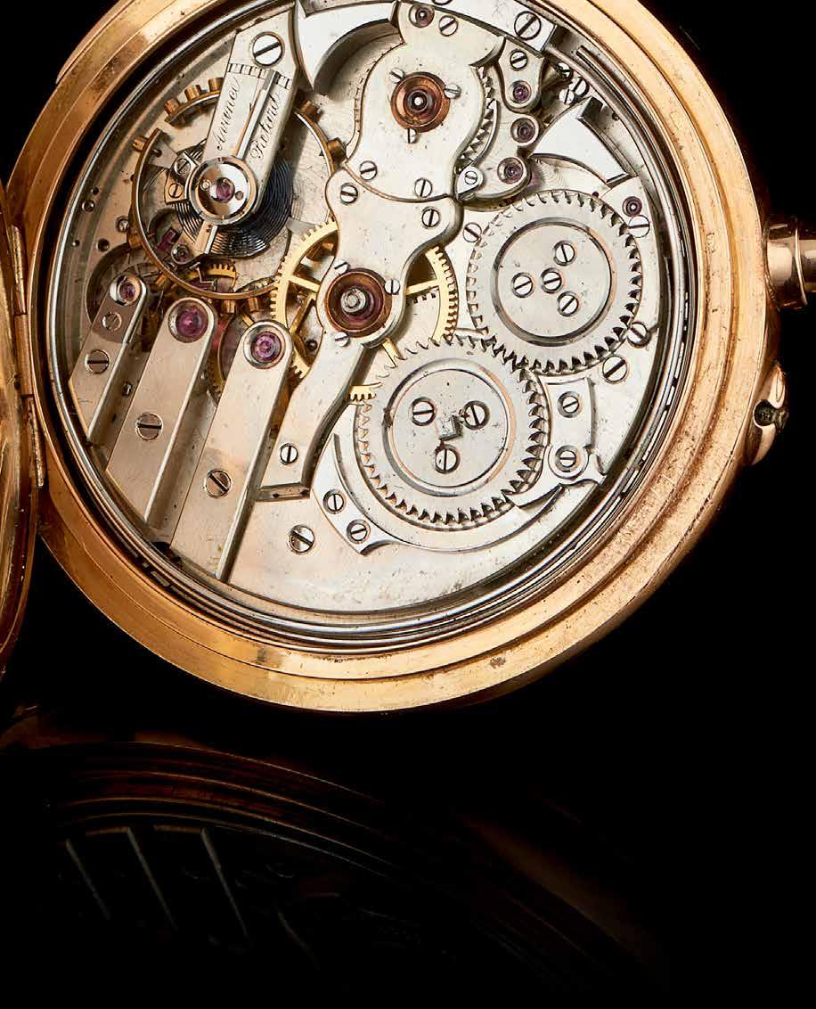 Relógio de bolso. Movimento mecânico de corda manual (cal. 19.57) com micro regulação e nº de série 2335422. Caixa em ouro (750/00) com duas tampas com a ref. igual ao nº de série. Mostrador sem fios de cabelo. A funcionar no momento da peritagem. Em excelente estado de conservação.