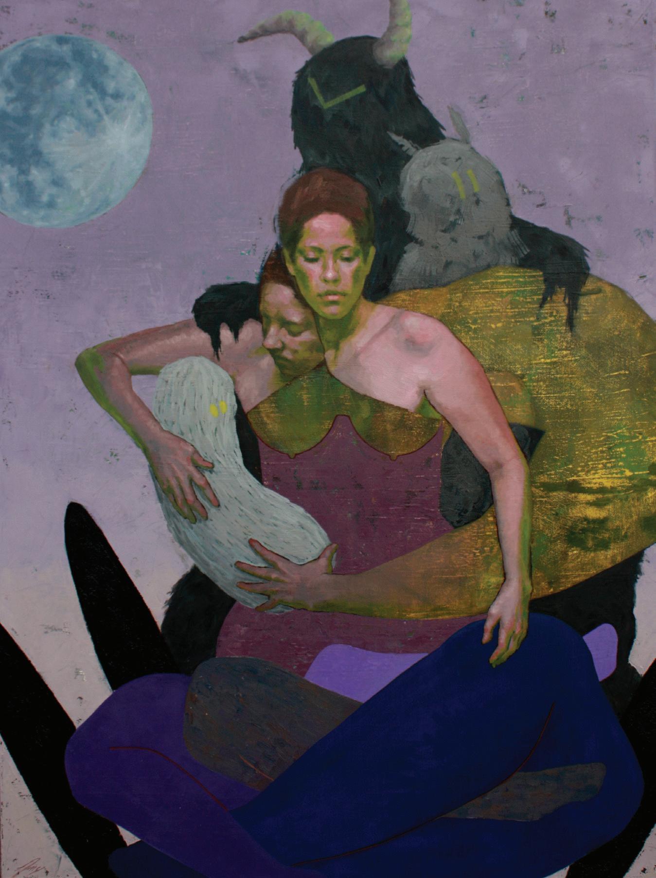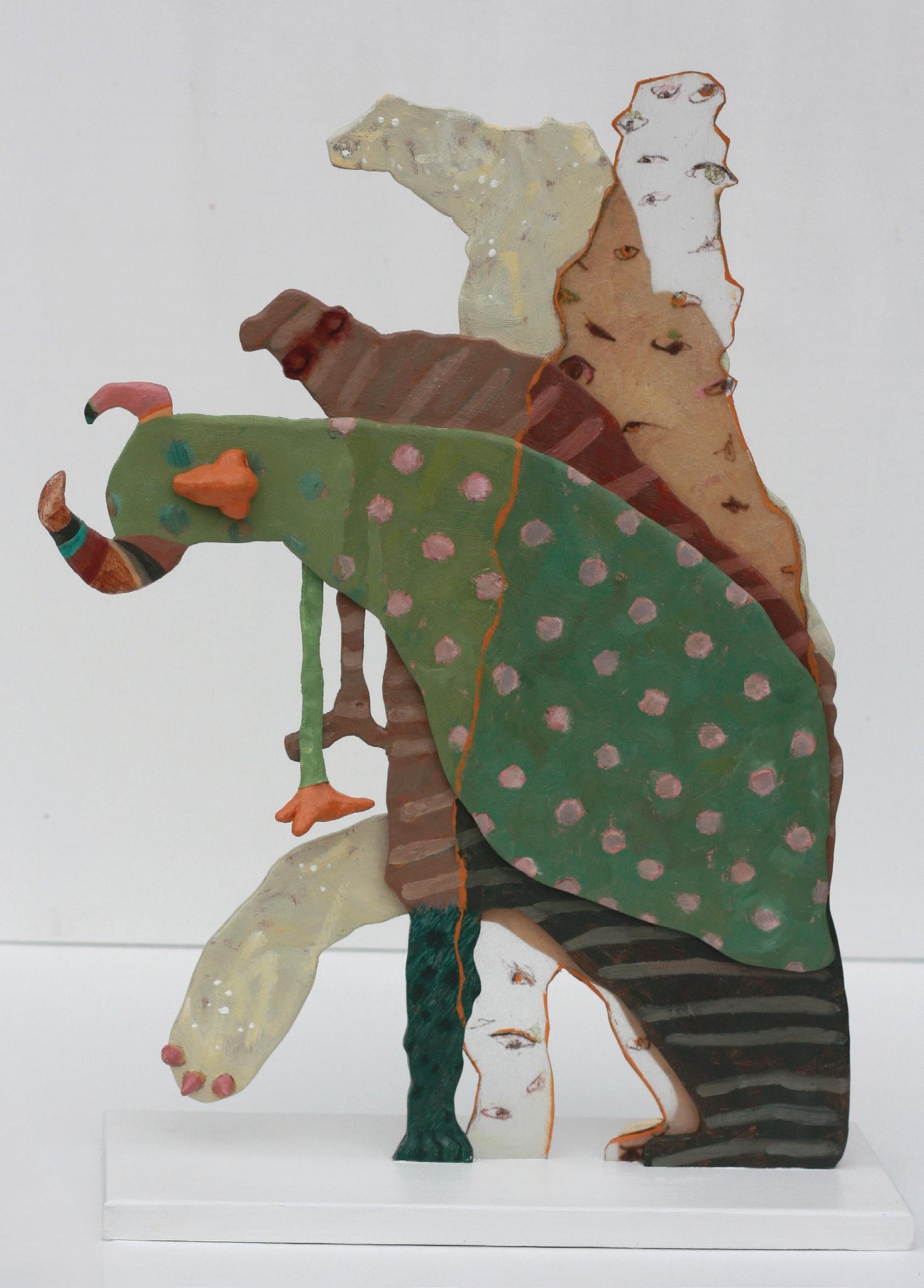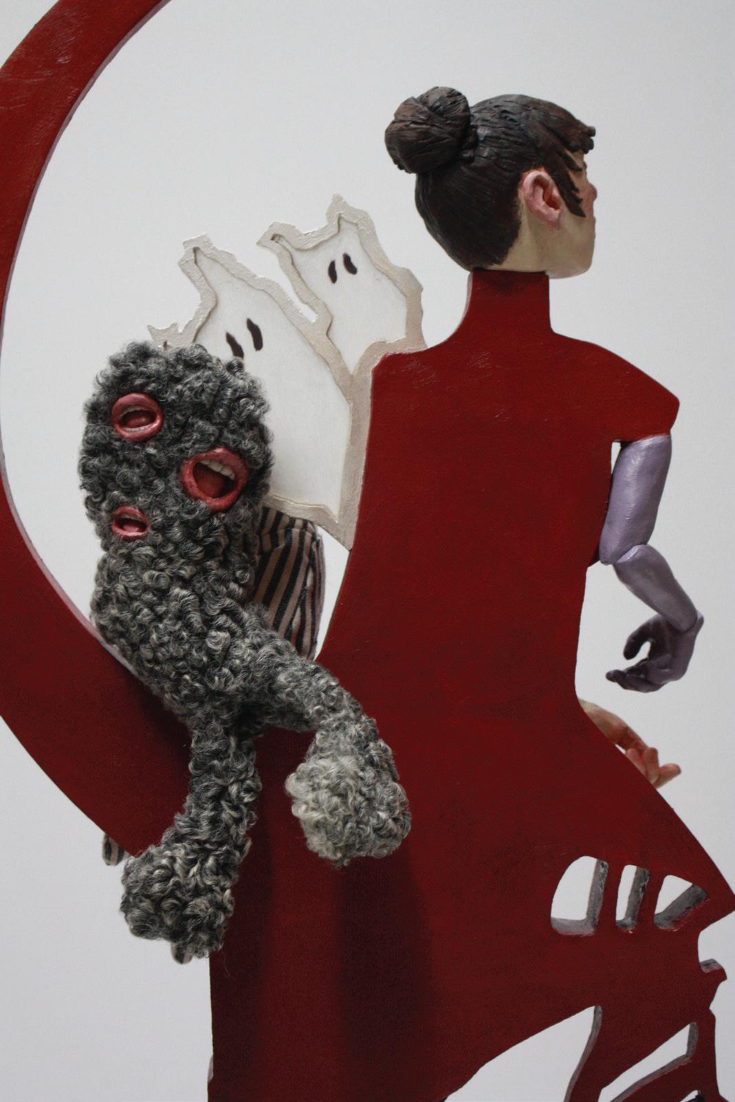 Using symbols of human, animal and insect bodies, as well as monsters and ghosts, mechanical and abstracted forms, I suggest a complex psychological landscape in each figure. These visual metaphors evoke ideas such as primal instinct, imagination, haunting memories, self-protection, dignity, and resistance. I explore an allegory of what resilience might look like in the face of hard and life-altering circumstances.