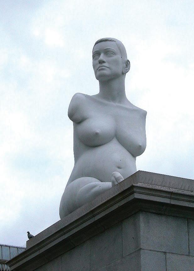 11.5 foot tall, 13-ton marble sculpture exhibited on a plinth in London’s Trafalgar Square for eighteen months in 2006, drew hostile reactions from certain quarters: not only was Lapper nude (and barefoot), but she was also pregnant and disabled and occupying a space traditionally associated with able-bodied men. (Many conveniently forgot that Admiral Horatio Nelson, standing on top of a tall column in the centre of the square, was himself physically disabled.)4