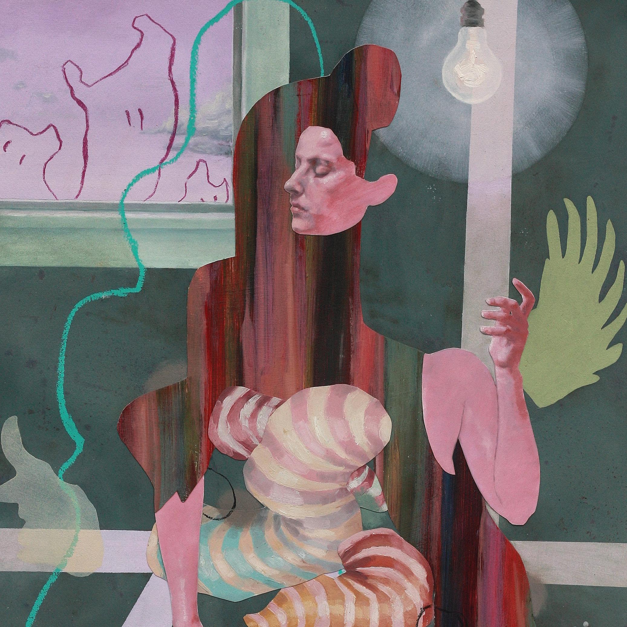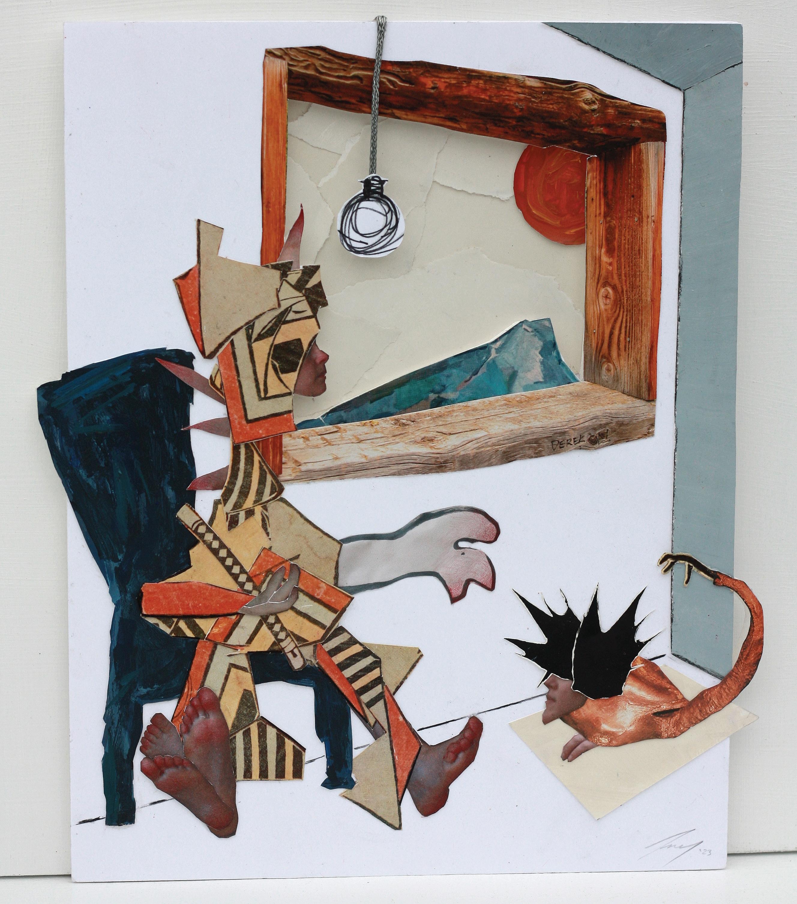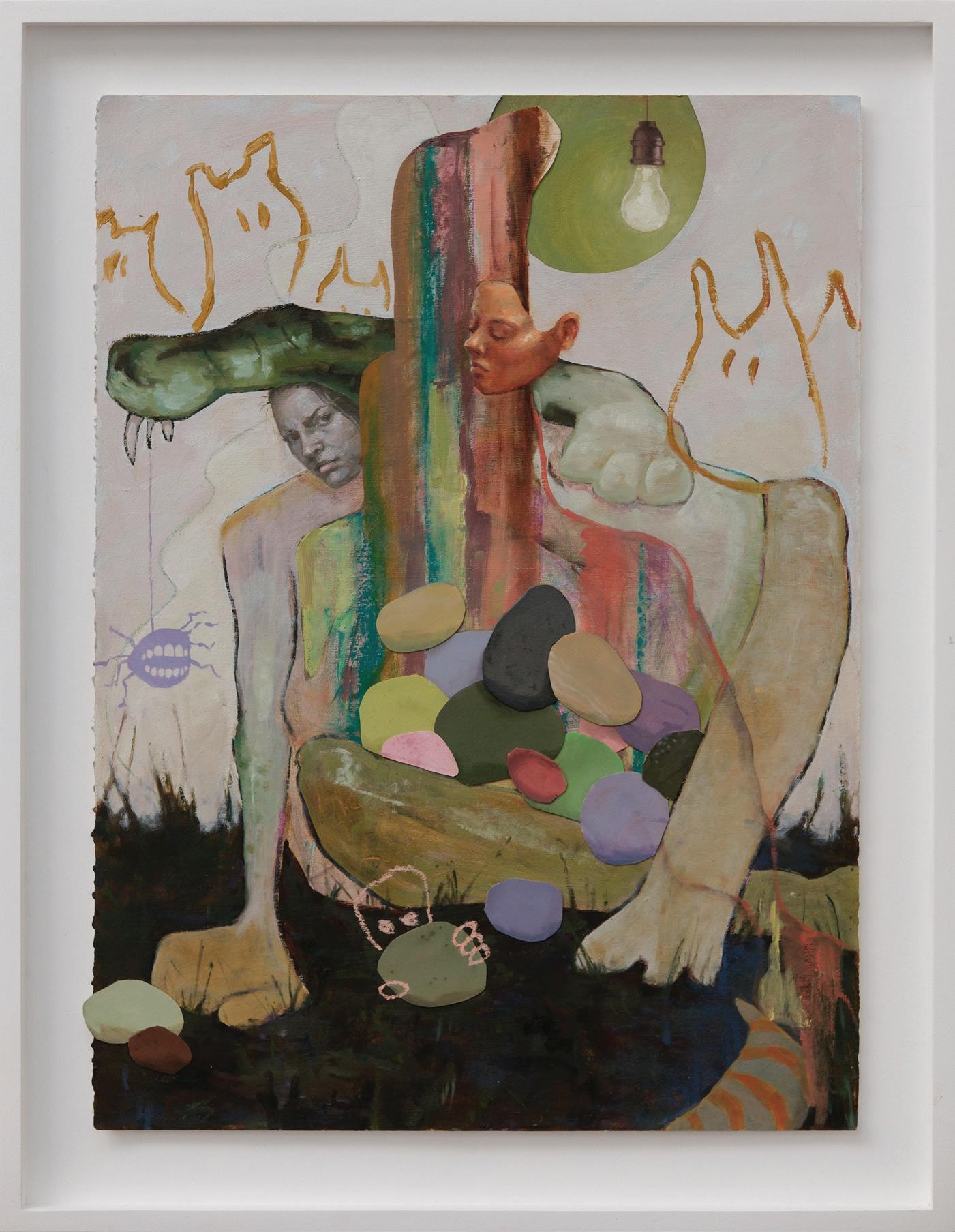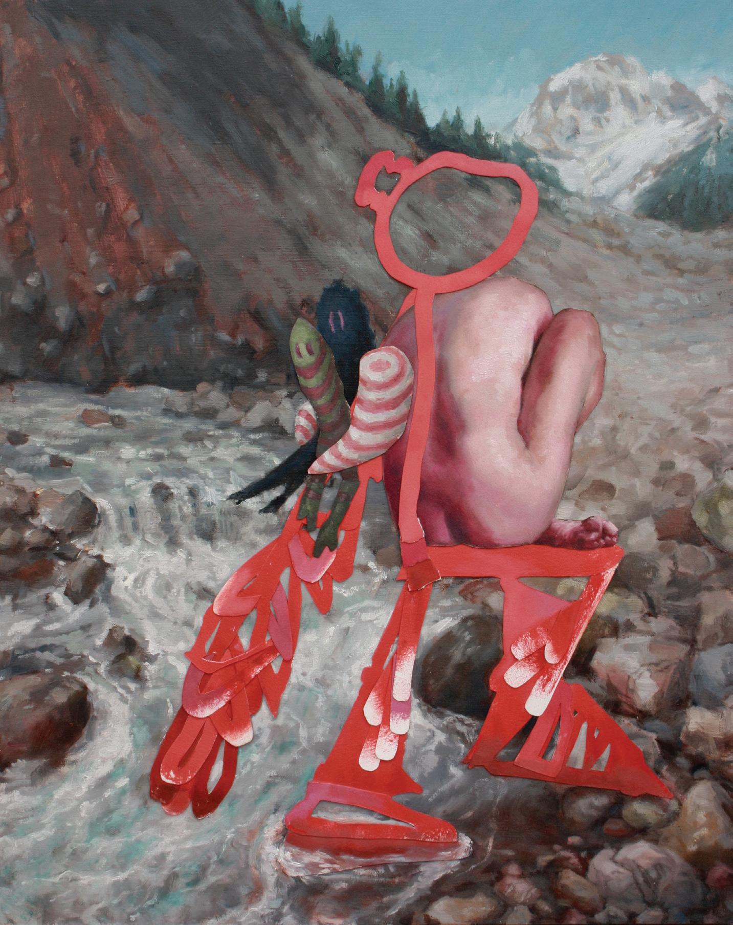Creature by Creek, 2022. Collaged oil painting on mounted paper. 12x16 in. (unframed).