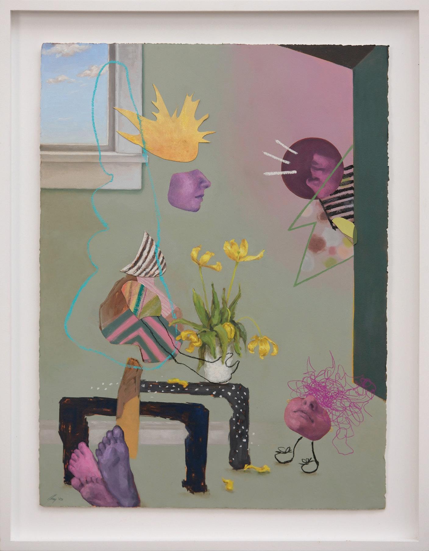 Peace Offering 1 (Tulips), 2024. Oil paint with pastel and charcoal on mounted paper. 30x22.5 in. (unframed).