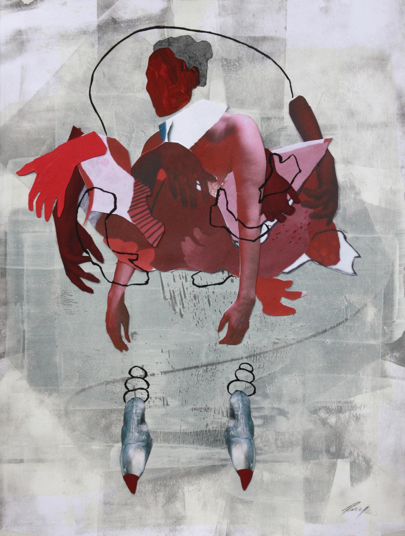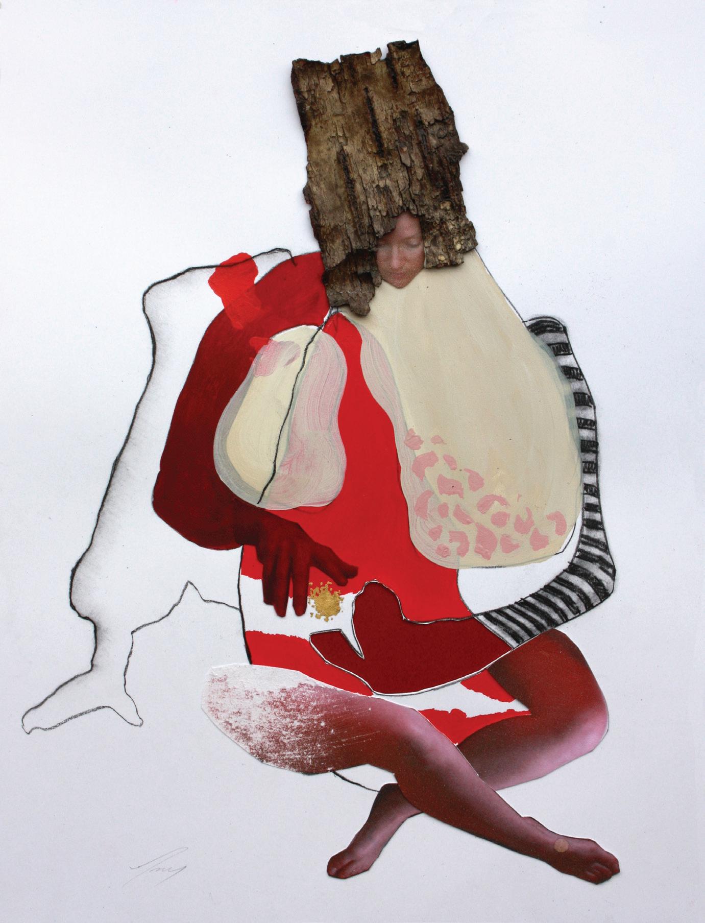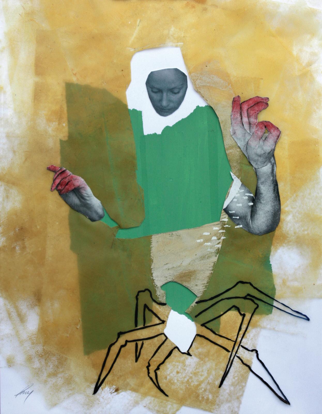 My process typically starts with small mixed media collages. I explore feelings and ideas through photographs, papers, magazines, paints, and other media until a complex and embodied presence emerges. These small works are usually finished pieces, and are often the inspiration for larger paintings, drawings, and sculptures over time.