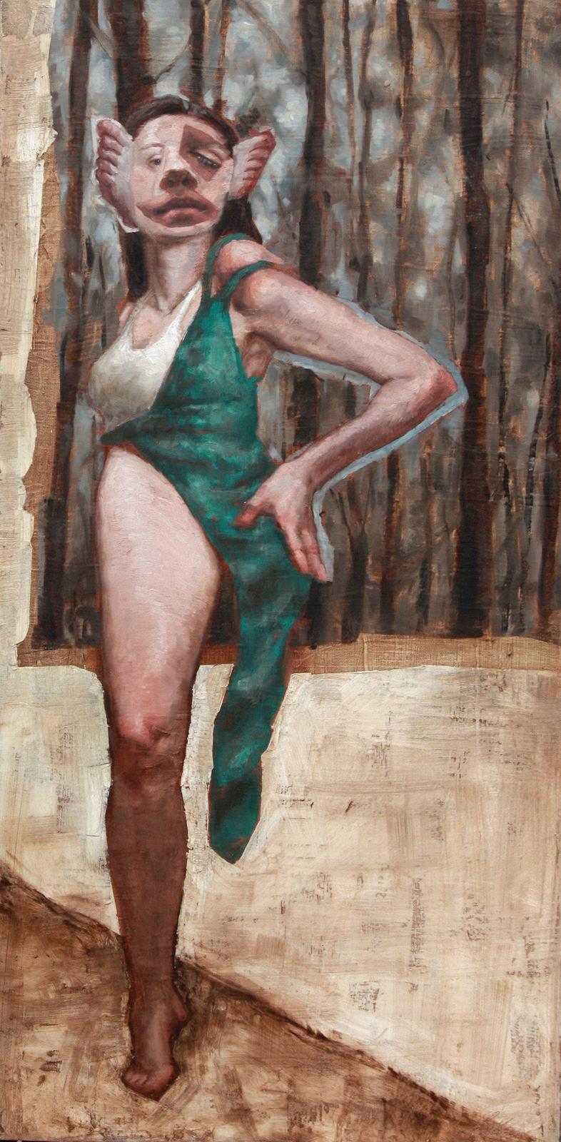 Oil paint with pastel and charcoal on mounted paper. 30x22.5 in. (unframed).