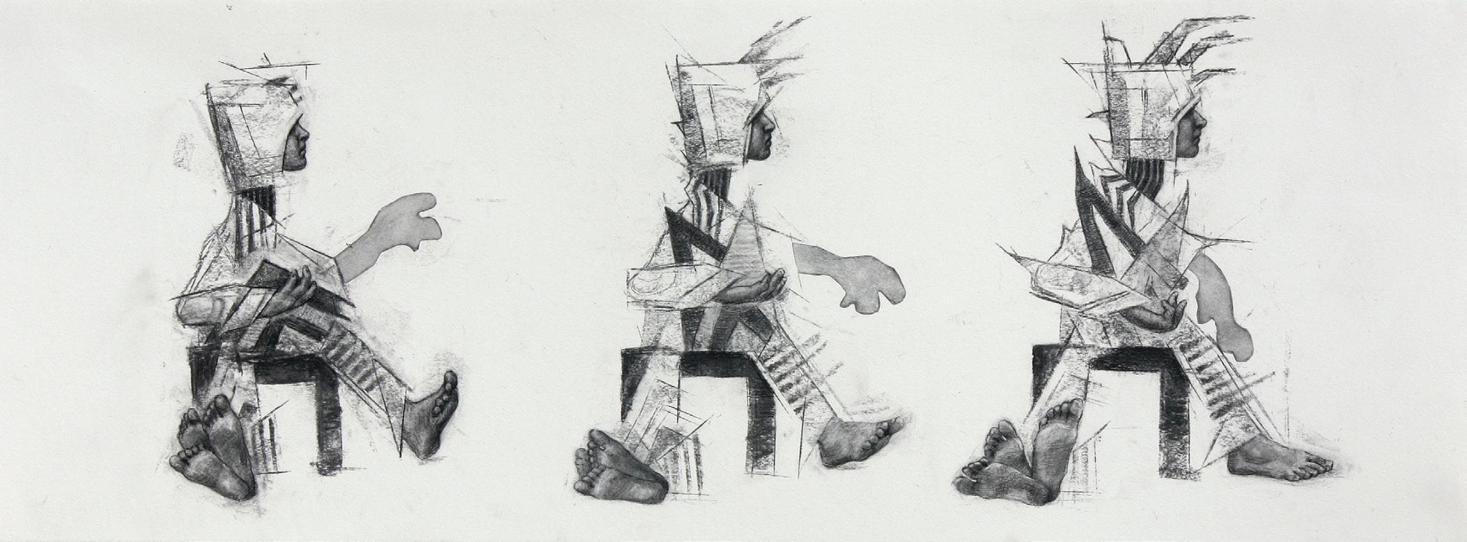 Growing Armour, 2024. Charcoal on paper. 11x30 in.