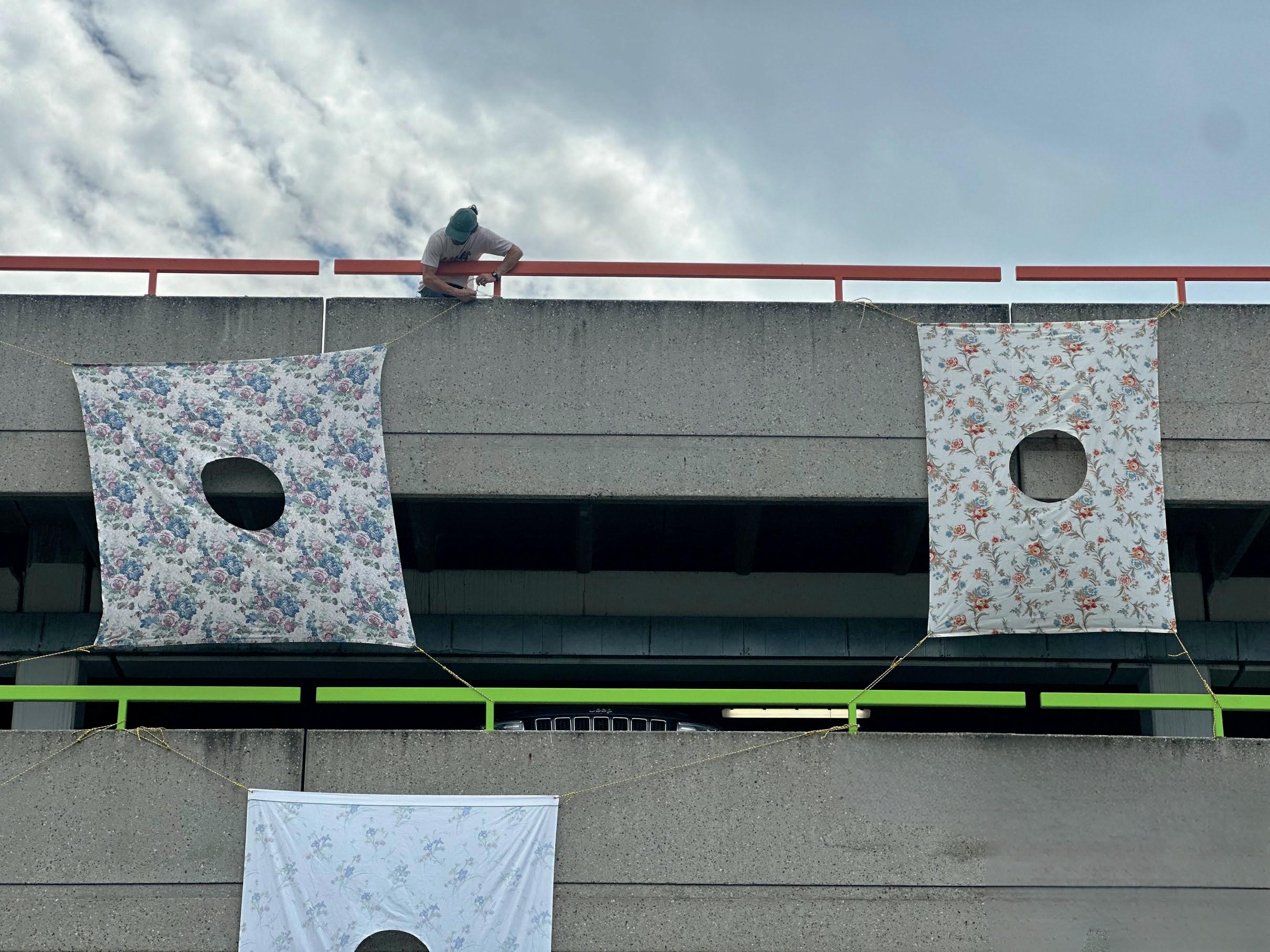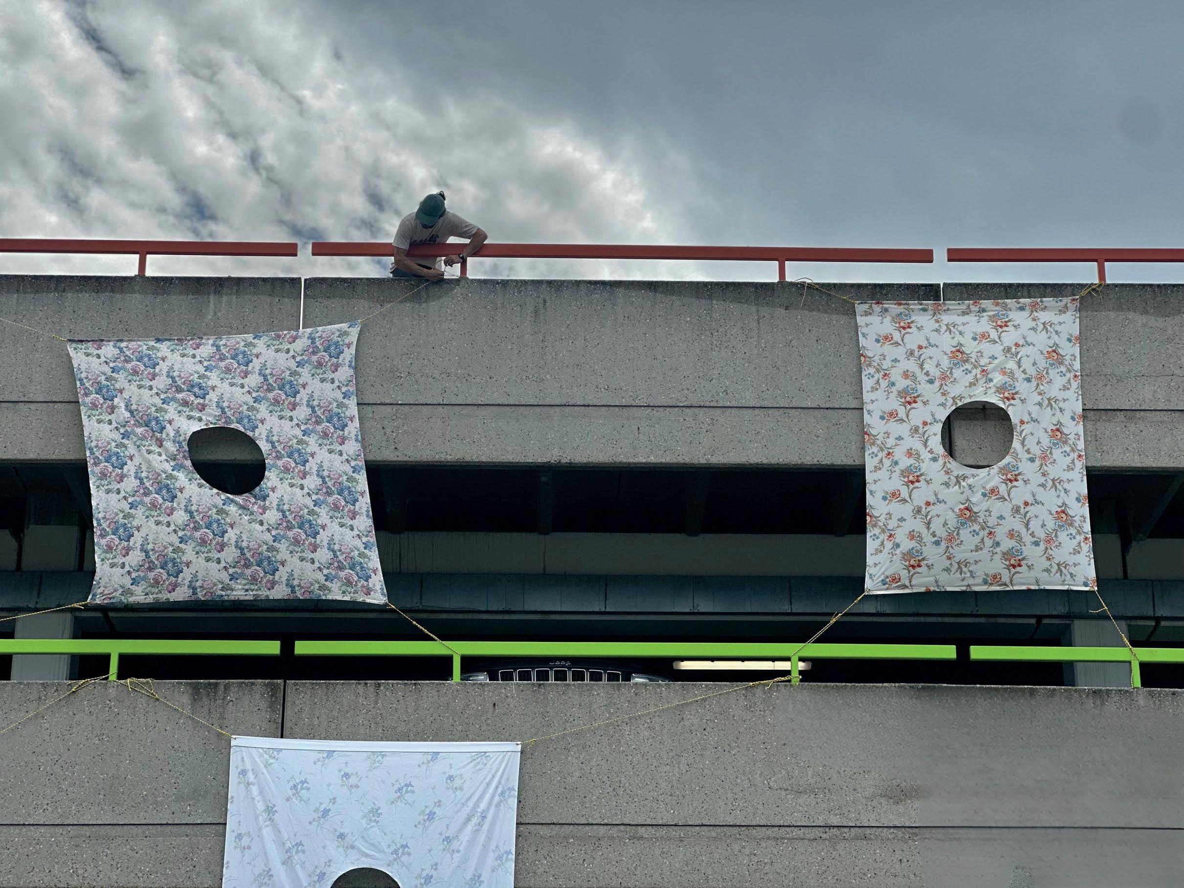 Soft Architectures features prints pulled directly from the surfaces of demolished or soon-to-be-demolished buildings, transferred onto found bedsheets and other soft materials Through this process, Sylvan Hamburger preserves traces of disappearing architecture, layering personal and collective memory into tactile impressions of the built environment
