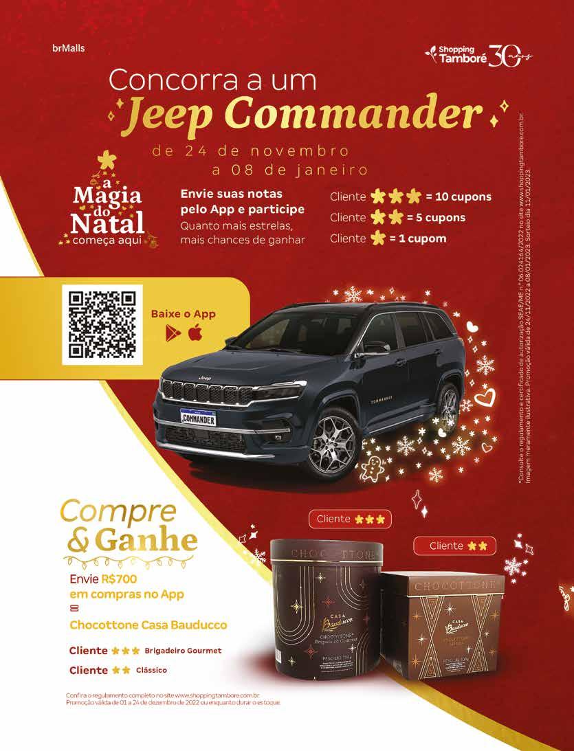 O ANO de 2022 com certeza marcou a história do Shopping Tamboré. Inaugurado em 1992, o centro de compras finalizou a sua quarta expansão neste ano, trazendo o Taste Lab. O novo espaço é o pri meiro coletivo gastronômico de todo o estado de São Paulo, e reúne nomes celebrados como Jun Sakamoto, Rinconcito Peruano, Camelo Pizzaria e mais de 15 operações inseridas em um ambiente diferenciado que mescla área interna e externa, além de uma área infantil. Ainda, anexado ao Taste, está o novo espaço de expansão, com nomes como West wing, de decoração, e Carter's, de roupas infantis e Aramis, de moda masculina. “No total da expansão, mais o espaço do Taste Lab, investimos mais de R$80 milhões”, diz Rafael Marques, superinten dente do Shopping Tamboré.