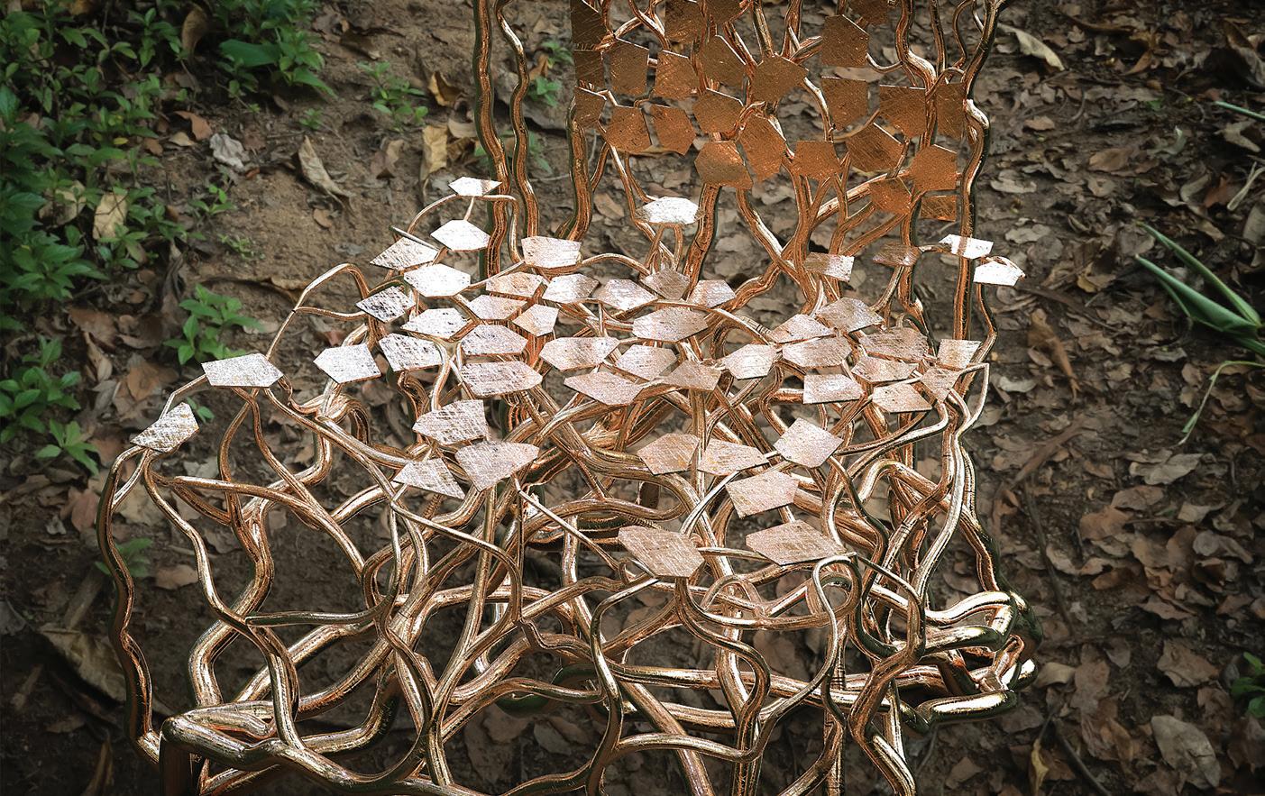 The entire chair is made of copper and must be 3D printed using the Selective Laser Melting (SLM) technique.
