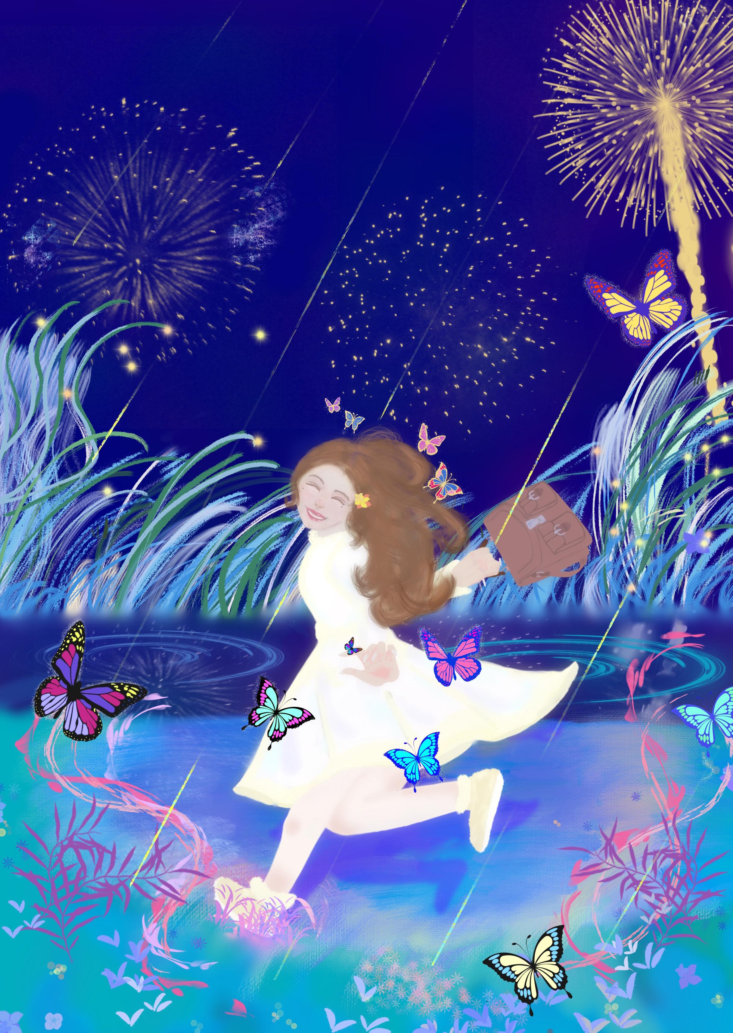 Night settled in, the stars lit my room. I step out of bed and onto the moon