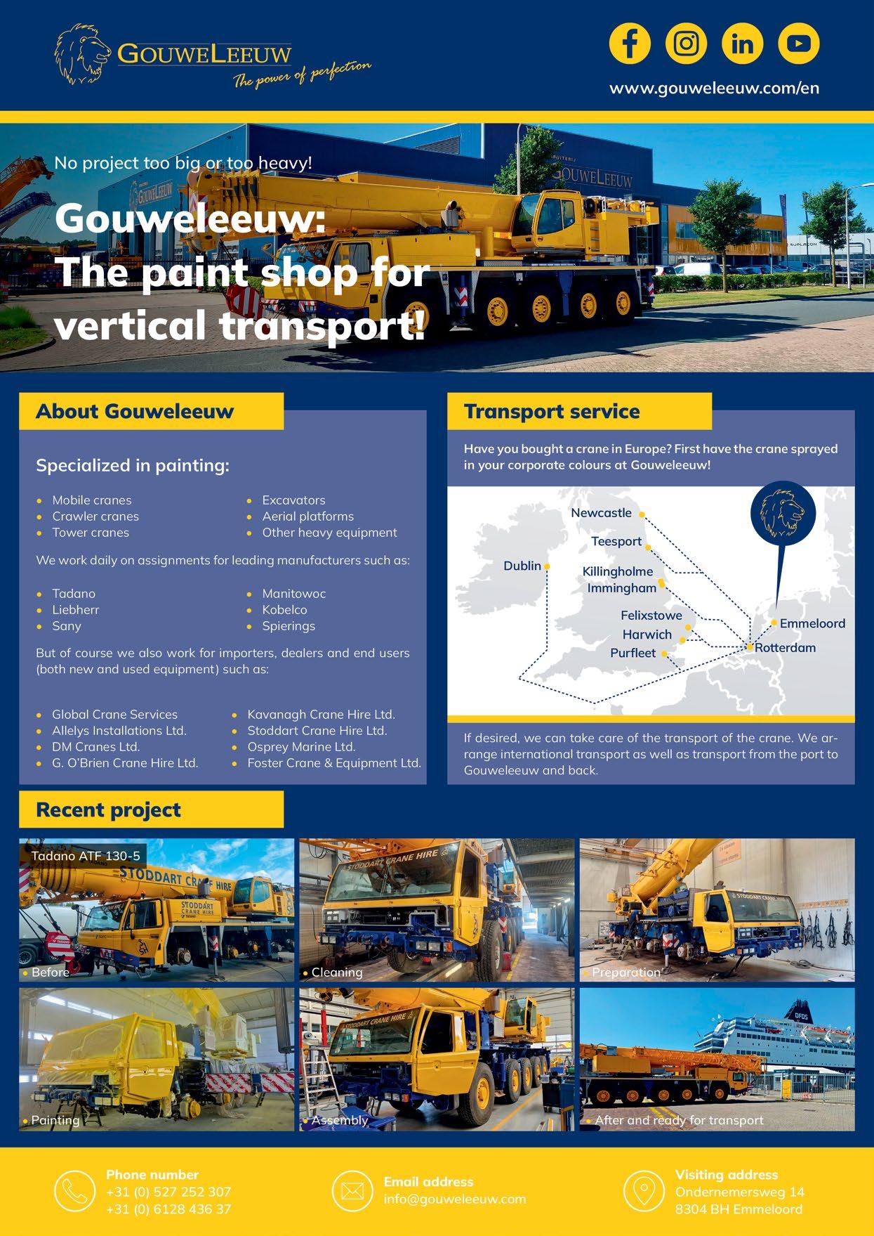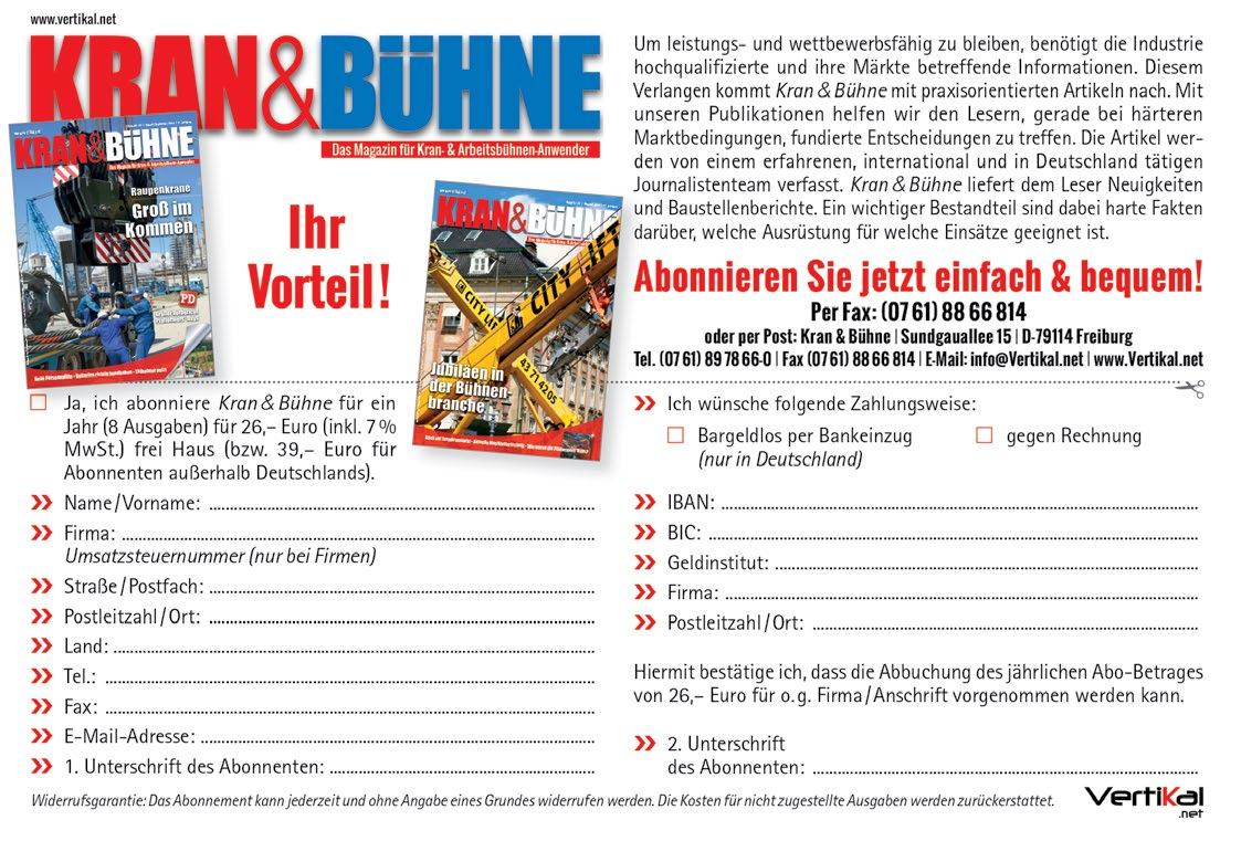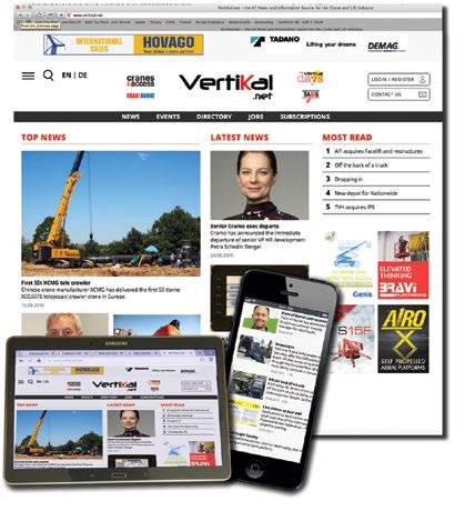Place your products or services in front of more than 28,700 individuals who buy, specify or use cranes, lifting gear, aerial work platforms, work at height equipment or telehandlers across 195 countries. Given the global readership you may be surprised at how little a regular advert costs and how effective it can be. www.vertikal.net/en/cranes-and-access/advertise advertising@vertikal.net or info@vertikal.ne