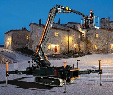 A six section jib takes the maximum radius to 33.3 metres, at which point it can handle 940kg. Maximum tip height is 22.5 metres on the main boom and 36 metres with the jib. The machines are fitted with nonmarking tracks and powered by a Stage V diesel with 415 volt electric mains capability. Overall weight is 33 tonnes. A two man work basket is also available.