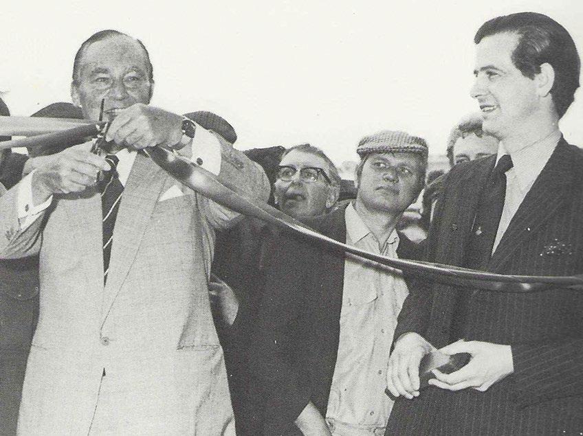 The opening of the new Jubilee fabrication facility at Sunderland 1977, Bill de Vigier of Acrow (L) with Peter Steel