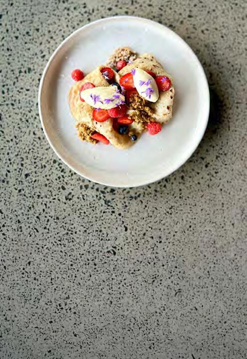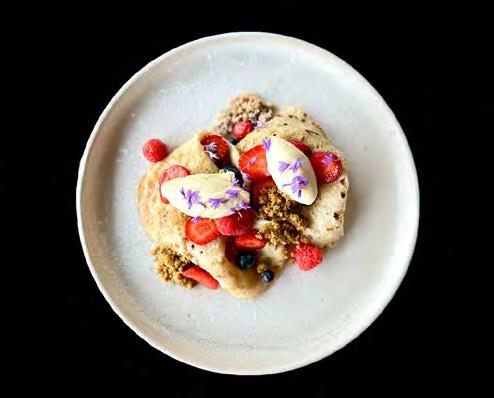 Berries, White Chocolate Cream, Pistachio Crumb & Lemon Sherbet