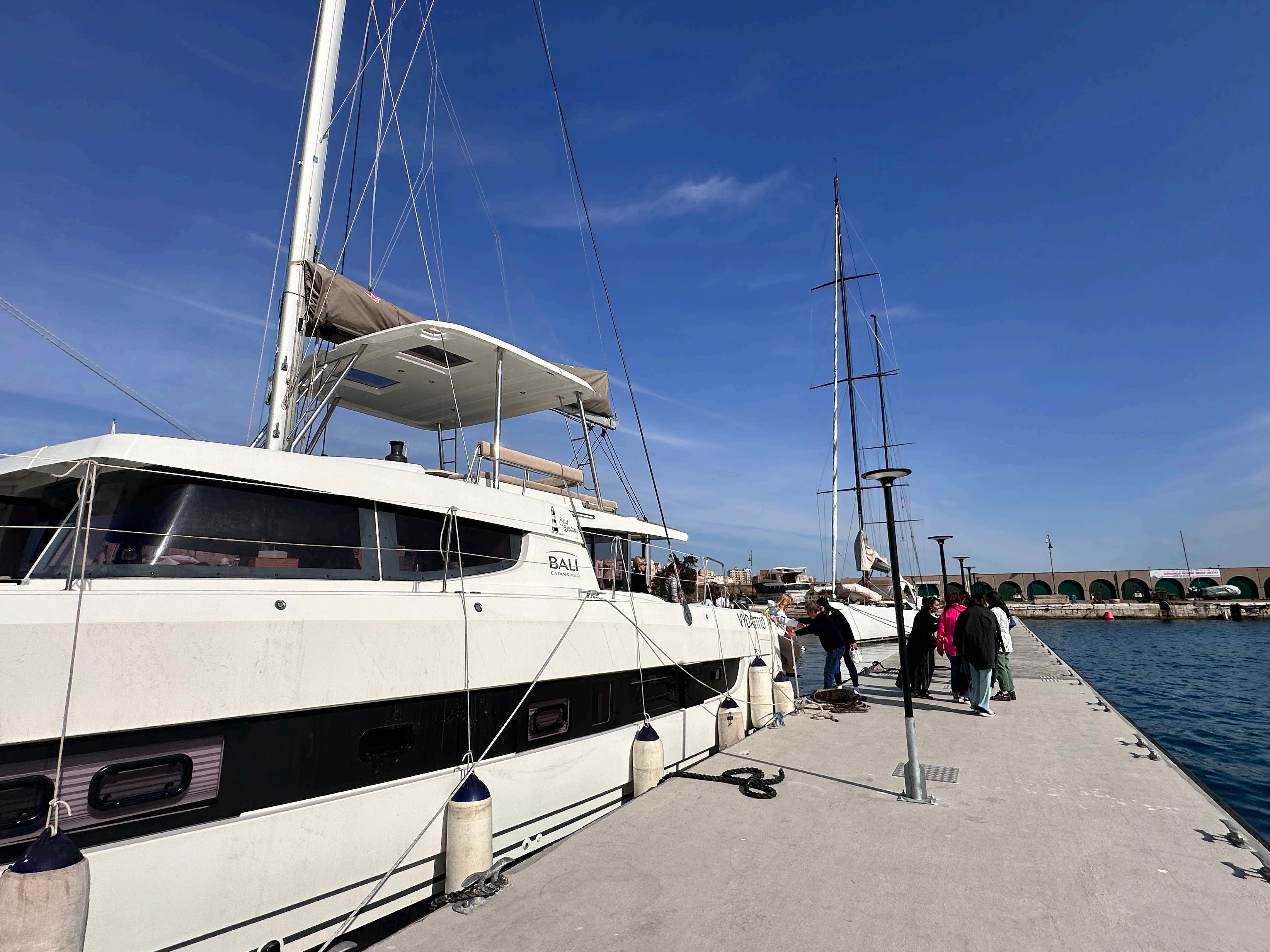 Sailing through the Gulf of Taranto on a sun-drenched afternoon was one of the most relaxing moments of my journey Aboard a sleek catamaran, we enjoyed a light, elegant lunch — local wine, mozzarella cheese, and soft focaccia with sun-dried tomatoes while the sea sparkled all around us.