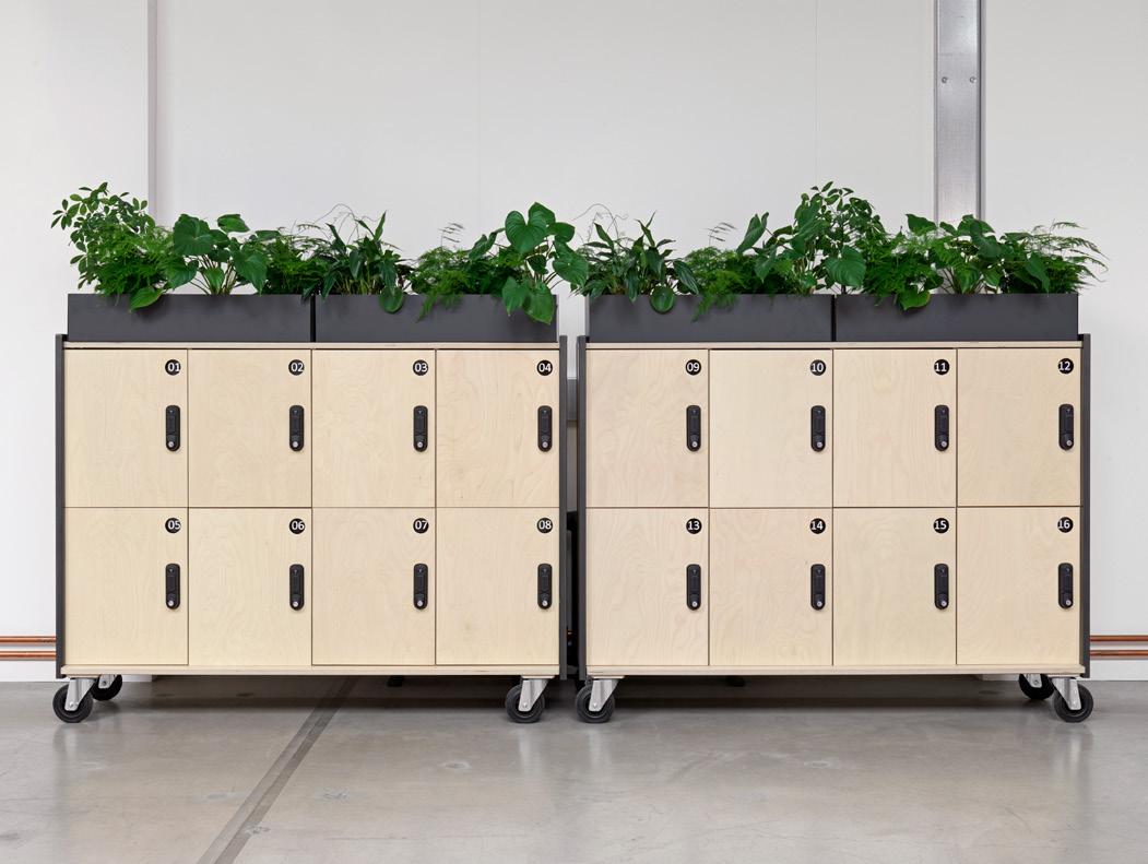 Utility Chair | Wooden Dowel Table This page Lockers on castors with Planters