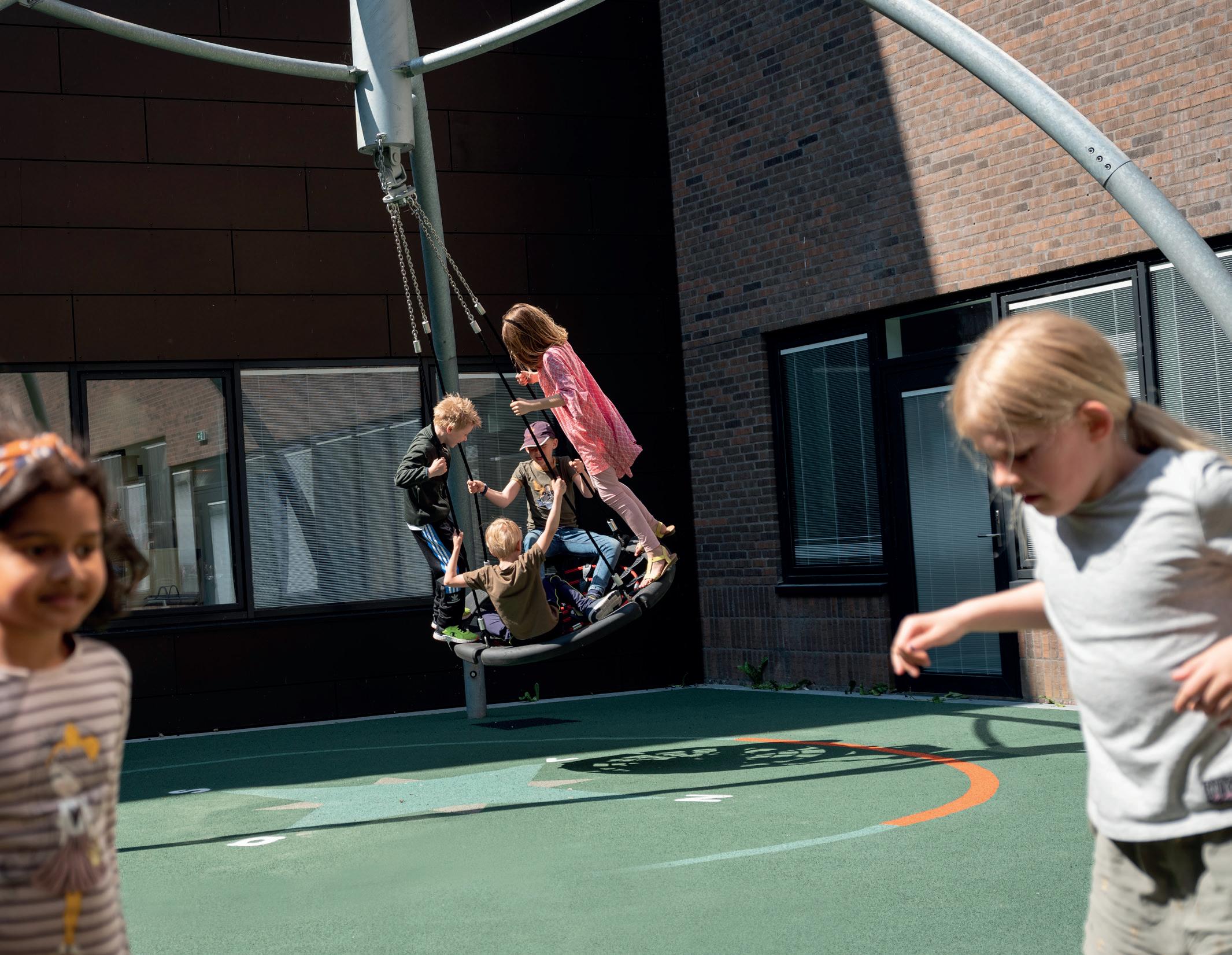 Gårdrummet på hospitalet i Gødstrupgiver både plads til boldspil, leg og afslapning, og så giver det samtidig mulighed for motoriske test og anden faglig udredning, der indgår i behandlingen af børn og unge.