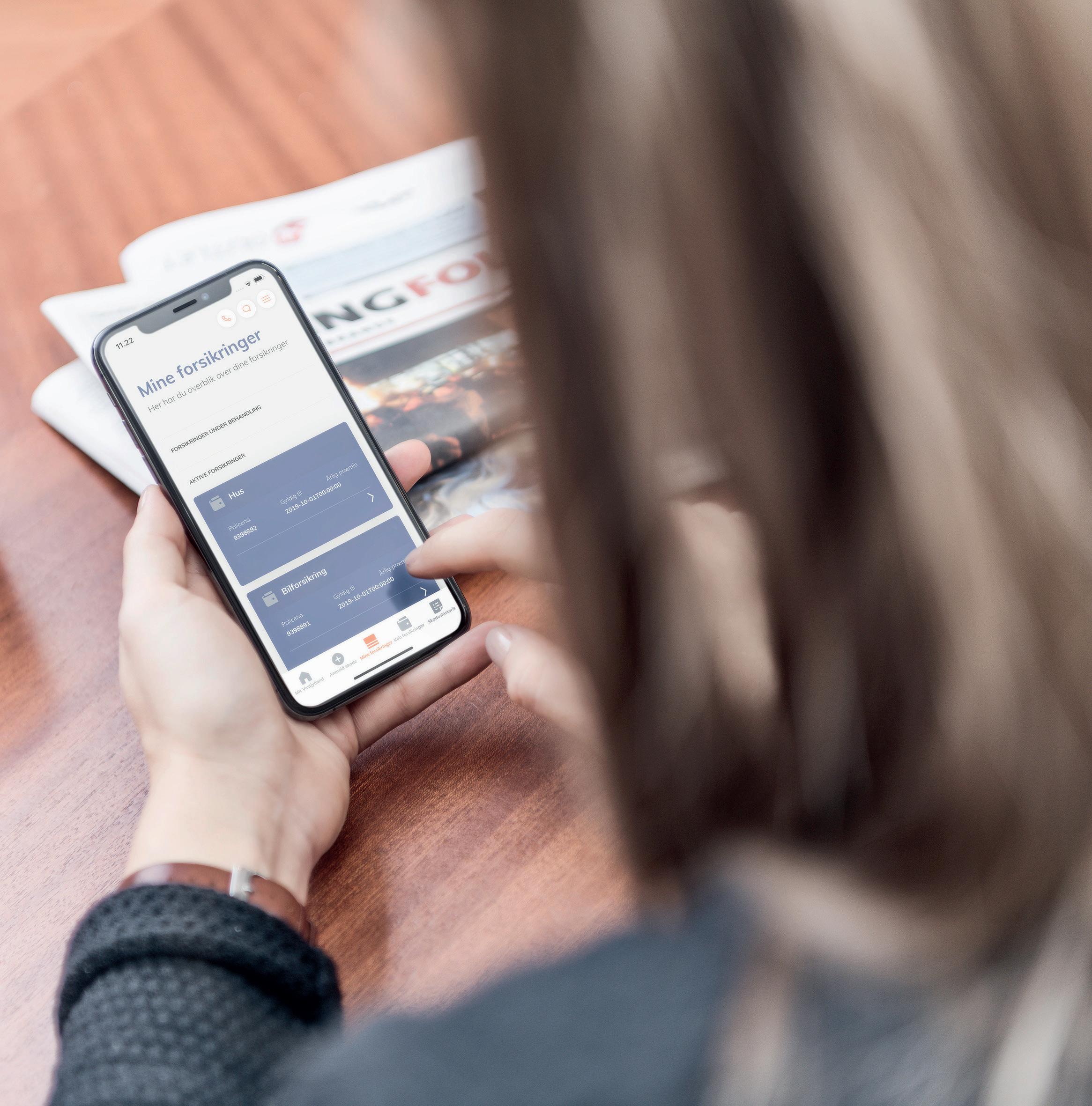 Hent vores app, hvor du hurtigt og nemt kan anmelde en skade, tjekke dine forsikringer eller købe en ekstra forsikring – fx hvis du får hund. Du kan downloade appen i App Store eller Google Play. Første gang skal du logge ind med MitID. Herefter kan du logge på med din egen pinkode.