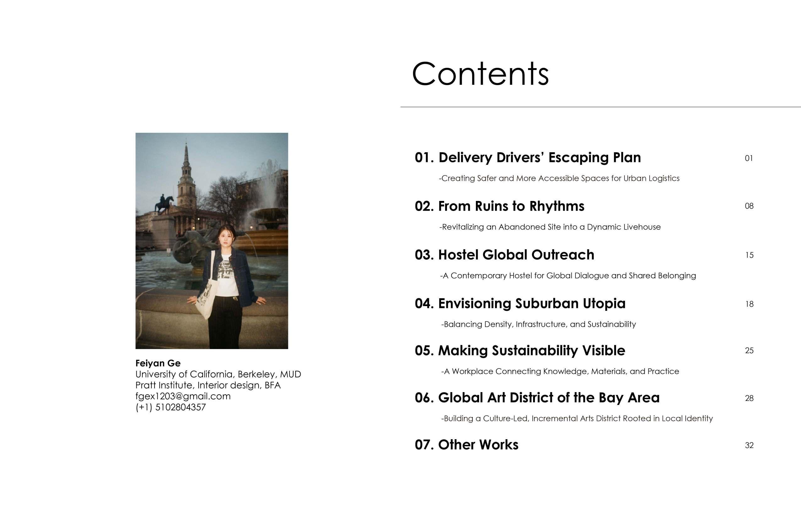 Feiyan is a Master of Urban Design candidate at the University of California, Berkeley, with a Bachelor of Fine Arts in Interior Design from Pratt Institute. Her design approach is shaped by interdisciplinary training and cross-cultural experience, allowing her to navigate projects across residential, workplace, hospitality, and community-focused environments. Throughout her academic and professional journey, she has developed a strong sensitivity to spatial sequencing, material logic, and the relationship between interior environments and their broader social contexts.