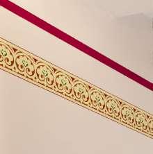 Floral block painting adorns the walls, complemented by a strip of theme-colored accent.