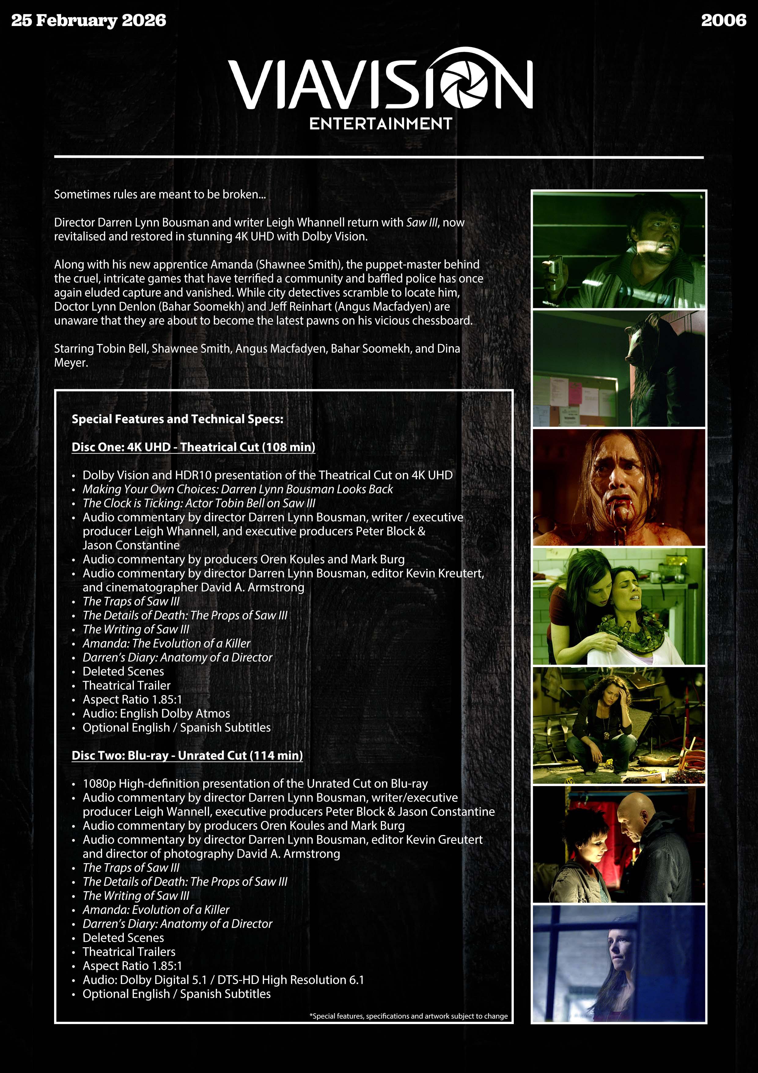Press Release // VVE Saw II and III 4K UHD Limited Edition