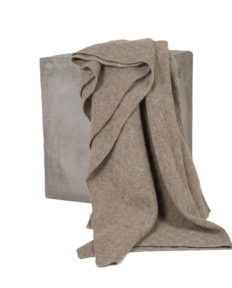 Beehive Knit Yak Down Throw BEIGE & CAPPUCCINO