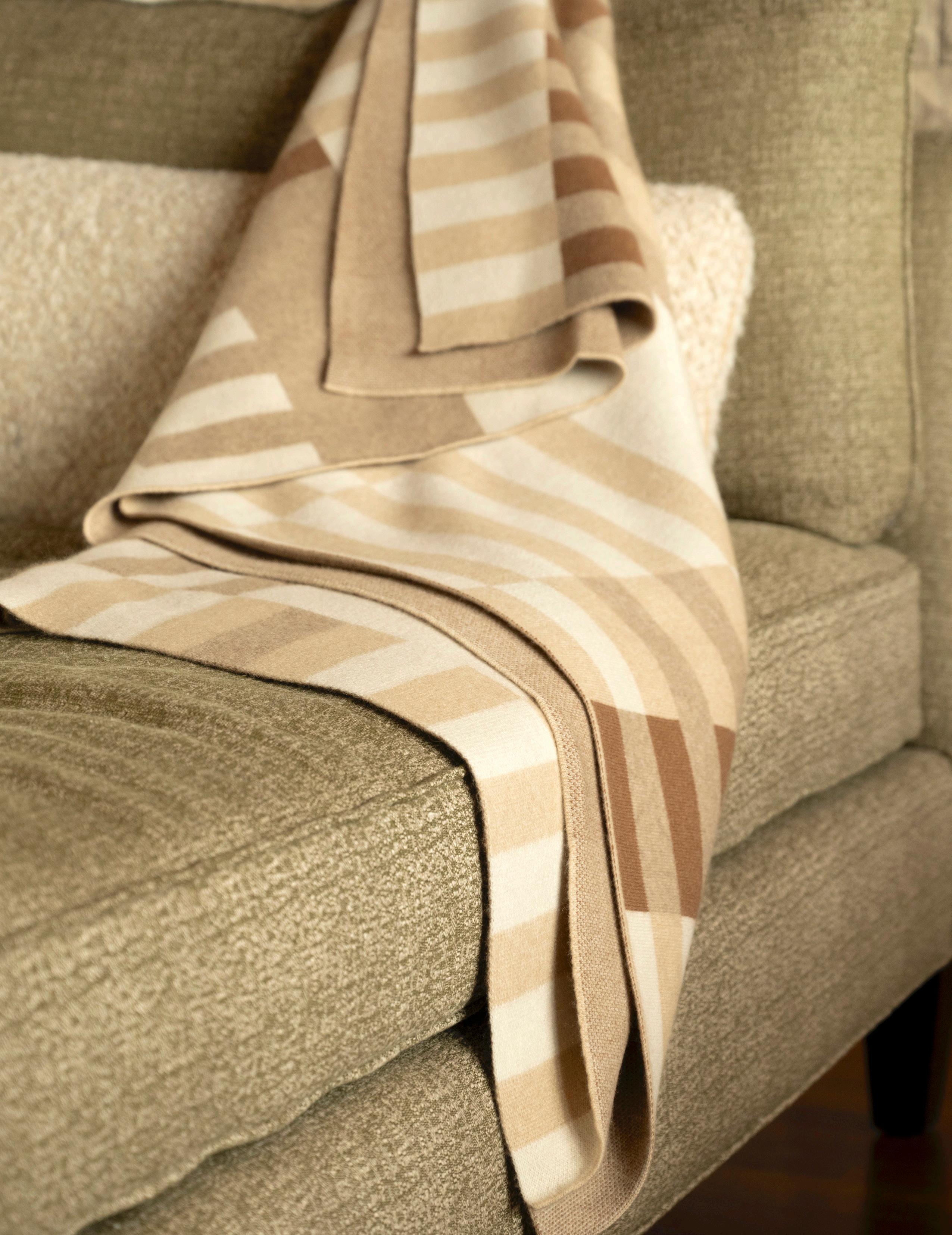 Color Field Cashmere Knit Throw SANDSTONE, LINEN, WHITE