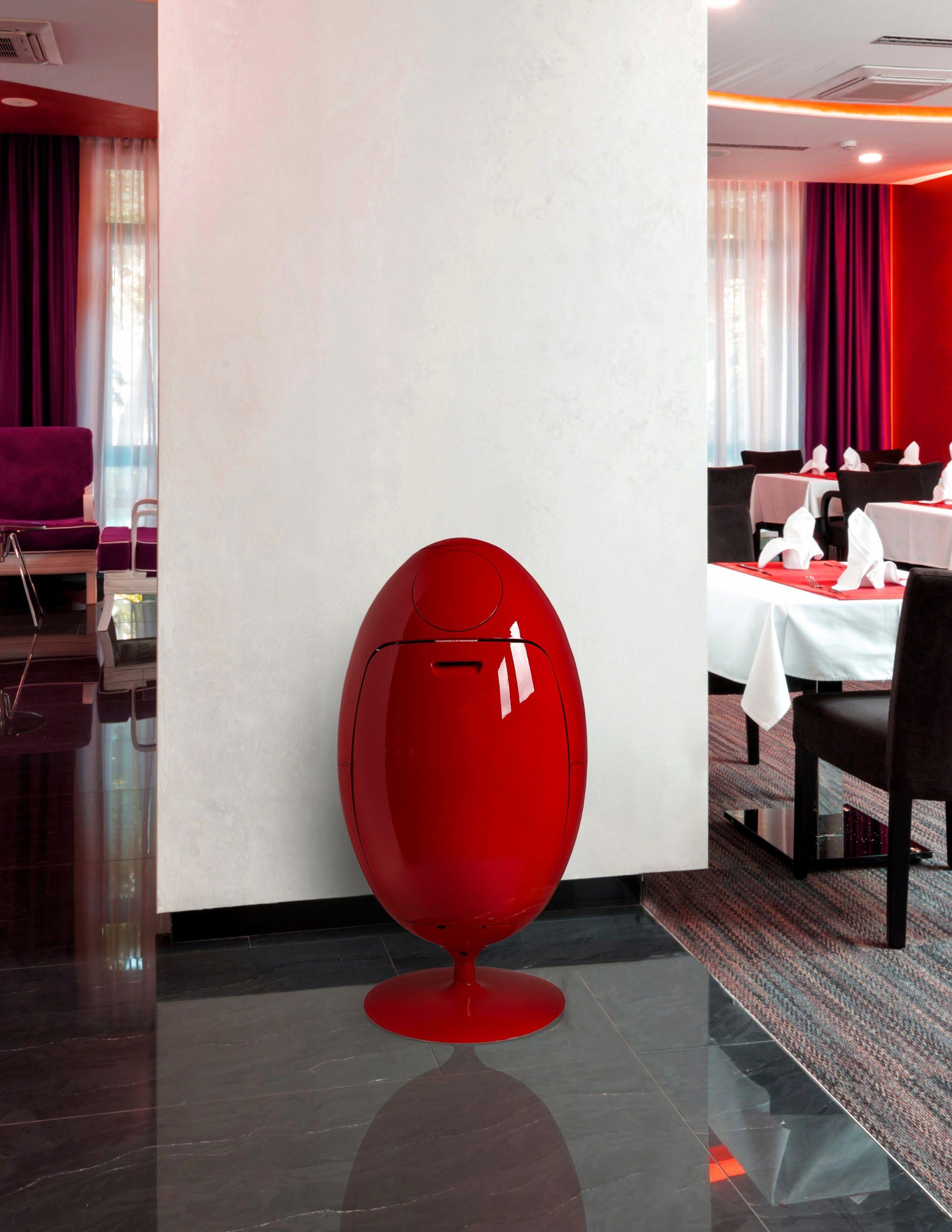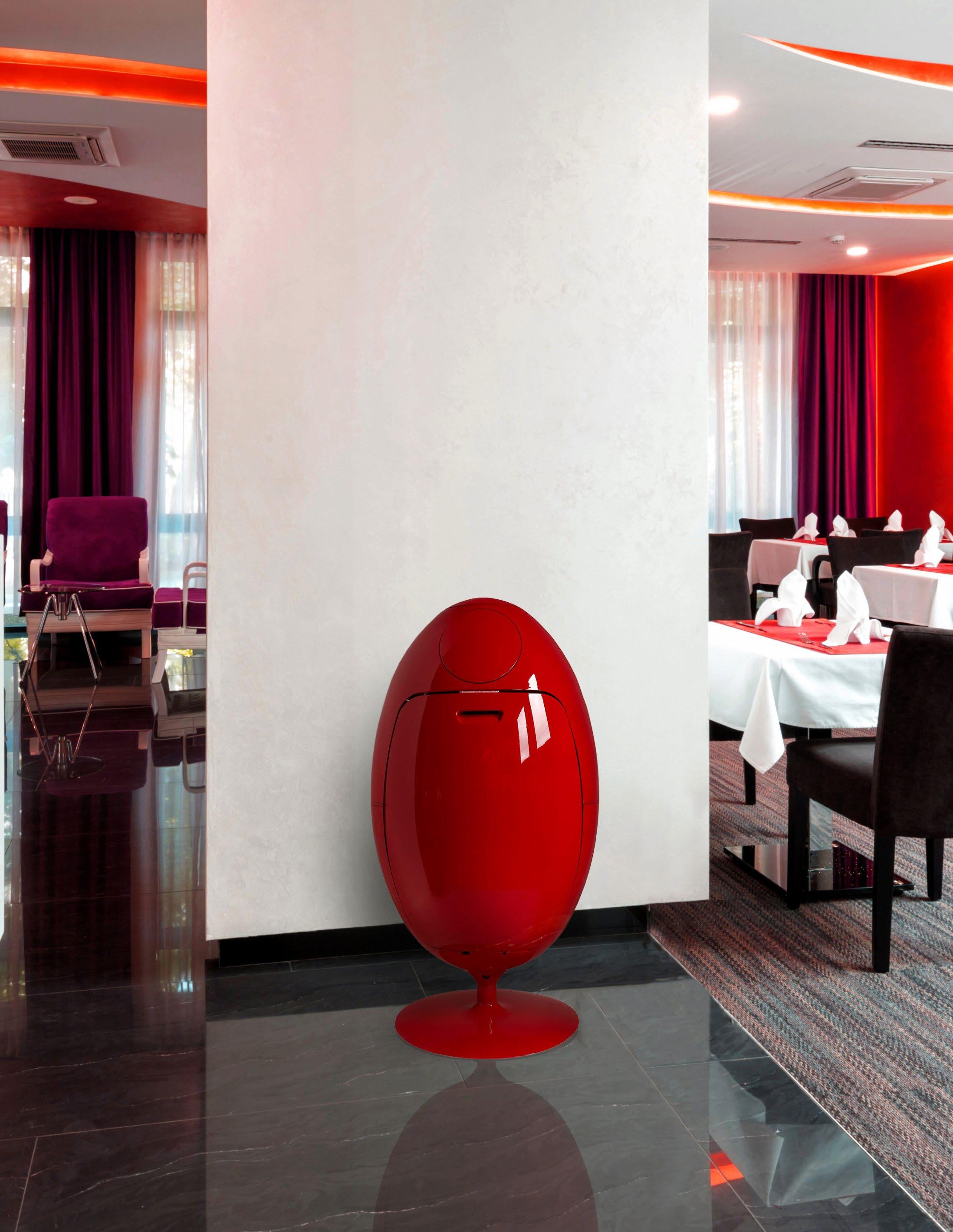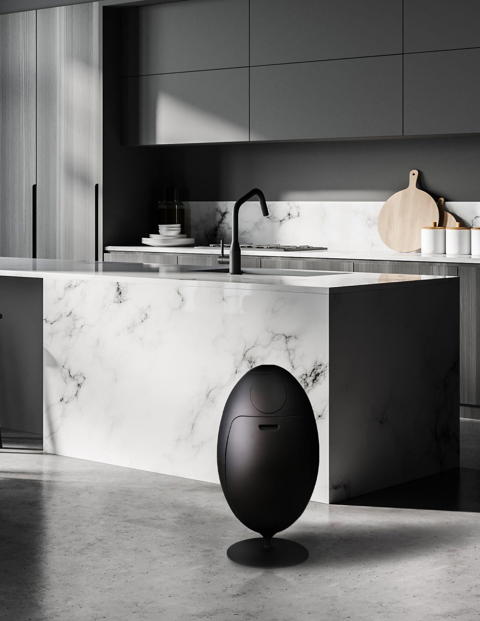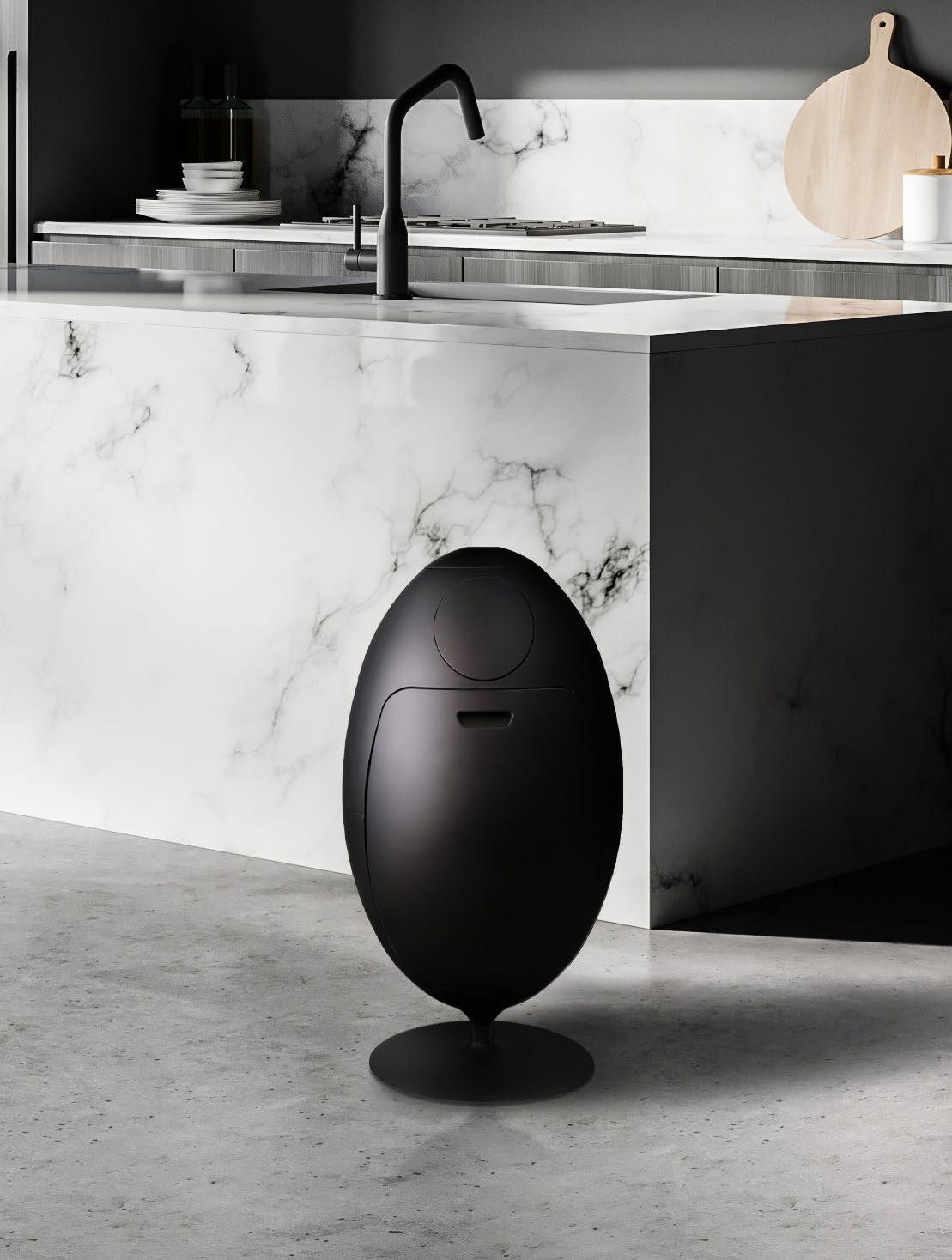 Ovetto, Sfera, and Buc are the main products, each offering contemporary and sleek contours coupled with functionality: Ovetto offers a mechanism to “crush” the plastic bottles and cans, Sfera allows for sorting recyclables, and Buc can be used as a laundry or toy sorter.