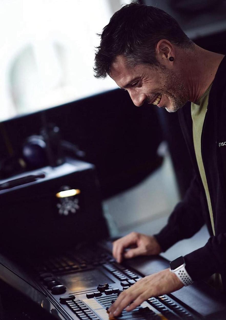 Y completando este triángulo lumínico, Cruz Lighting representa la maestría hecha oficio. Con una trayectoria legendaria en Ibiza, sus lives en Hï Ibiza son auténticos tratados de iluminación emocional que bien merecen un profundo estudio. Su experiencia, forjada en años de bolos e innumerables giras internacionales, lo han convertido en un “Master and Commander” de la cabina de luces. Su enfoque prioriza siempre la coherencia artística sobre el ego, recordándonos que la verdadera luz no es la que brilla más, sino la que hace brillar a los demás. Cruz es esa luz noble, la que de algún modo mágico no proyecta sombra, solo ilumina a quien tenga la suerte de trabajar con él.