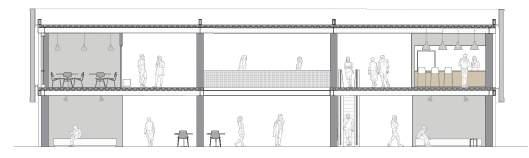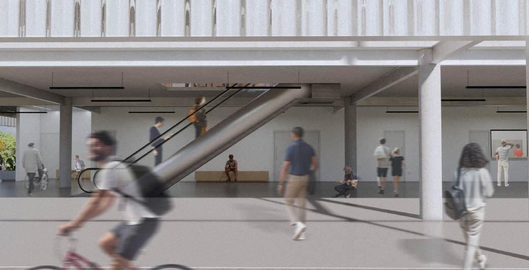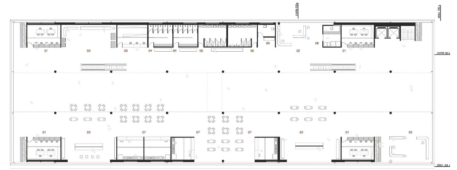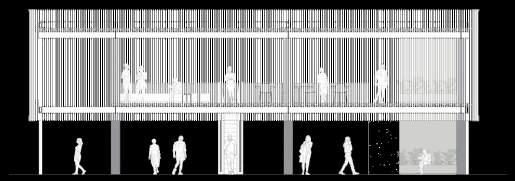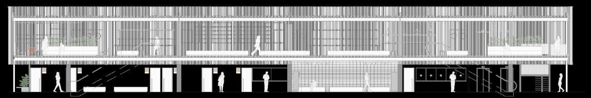 Logo, por meio de uma estrutura de apoio e serviços, o projeto tem como objetivo dar aos cidadãos a oportunidade de transitar entre as escalas existentes de maneira sutil, onde, ao longo de seu percurso projetado, seja possível usufruir de diferentes serviços e funções cotidianas, como por exemplo engraxar o sapato, jogar na loteria, sentar-se para fazer uma refeição, tomar um café pós-almoço e até mesmo descansar à sombra das árvores. Projetualmente, busca-se propiciar possibilidade de encontros e serviços com uma qualidade arquitetônica e infraestrutura dequada à escala inter-ministerial, dialogando tanto com o espaço urbano do “entre” — de menor escala – quanto com a própria escala Monumental do “exterior”. Além disso, um centro de atendimento ao turista, estacionamento e pontos de aluguel de bicicletas e guarda-volumes fazem parte da infraestrutura proposta, de forma que o espaço não seja apenas voltado para os trabalhadores locais, mas também para que possa se tornar parte da vivência de muitos outros frequentadores da Esplanada dos Ministérios e de Brasília, garantindo a sua heterogeneidade de usos e usuários.