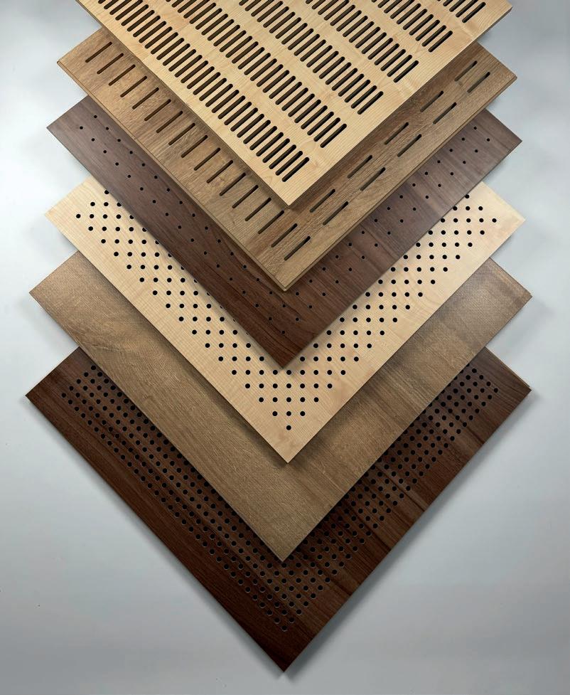 Gama de paneles acústicos ranurados realizados en mdf ignífugo Bs1d0.