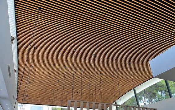 The Ideacustic product range provides excellent acoustic comfort in spaces related to high decoration. Our ceiling and wall panels are based on a system of grooves of various widths and perforation diameters that can be adapted to any technical and aesthetic requirements. These options are frequently used in modern architecture for their ability to create spaces where it is necessary to integrate design and acoustic absorption. With Ideacustic we achieve a differential fnish aimed especially at commercial spaces, auditoriums and any project where it is necessary to acoustically condition environments of high aesthetic quality.