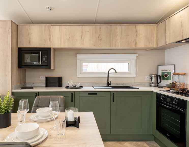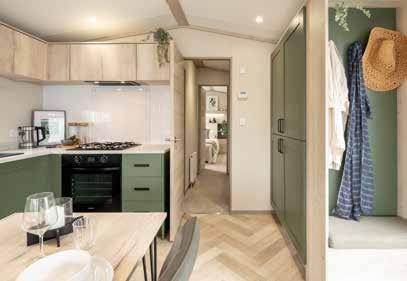 From the moment you step inside, the Ripley feels like a breath of fresh air. A considered, design-led space that pairs warm wood with rich green tones and neutral soft furnishings. The layout flows naturally from the open-plan kitchen to the inviting living area — made for slow mornings, sociable evenings, and everything in between.