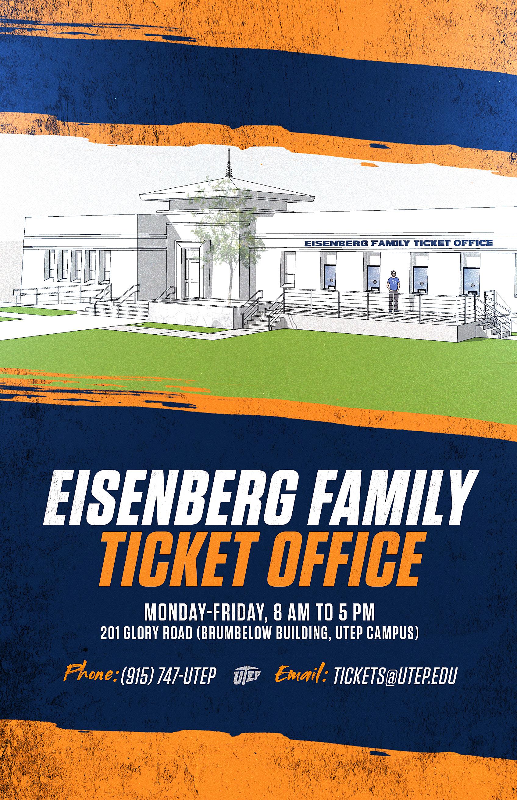 Location and Address: Eisenberg Family Ticket Office – Brumbelow Building on UTEP campus; 201 Glory Road; El Paso, TX; 79968.