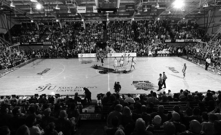 March 6, 2008: The “Fieldhouse Finale” saw many former SJU coaches, players and mascots in attendance, including Jack Ramsay, Mike Bantom and Jameer Nelson. The on-court Hawks added to the celebration with a 71-66 upset of No. 8 Xavier, the highest ranked team ever beaten at the Fieldhouse.