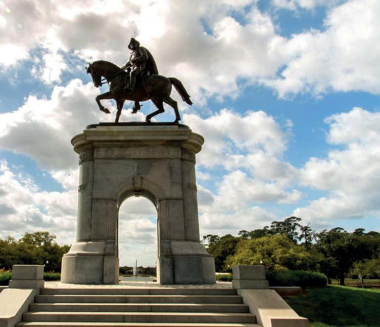 Este parque frente al Centro de Convenciones George R. Brown en el centro de Houston ofrece muchos sitios para tomar fotos ge niales. Monument Au Fantom (Monumento al Fantasma), la gran escultura de forma libre en rojo, blanco y azul en la Avenida de las Américas, es la obra de arte más conocida del parque y uno de los grandes tesoros de Houston. Es de Jean Dubuffet, el escultor francés del siglo XX de fama internacional que falleció en 1985 (dos años después de que se completó la escultura). Le gustaba comunicar ideas frescas sin hacer referencia a “clichés culturales”. En este caso, se trata de una ciudad imaginaria. Hay siete formas individuales que representan diferentes características de esa ciu dad, incluyendo una iglesia, un seto, una chimenea, un perro, un fantasma, un árbol y un mástil. La pieza más alta mide 10 metros. Esta escultura, que fue donada a Discovery Green por la familia Dan Duncan, es parte de la serie Hourloupe, que tiene esculturas complementarias en Nueva York, Chicago y Europa.