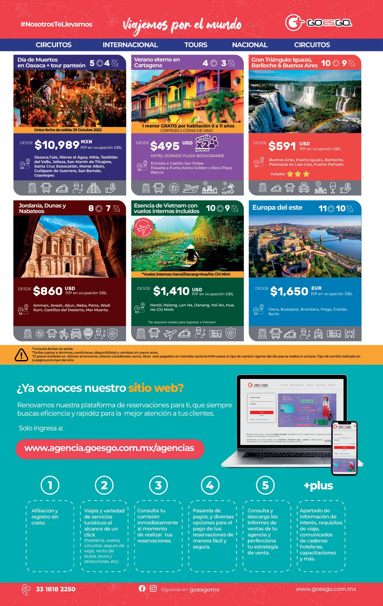 Acaba mos de celebrar el Día Mundial del Turismo, y creo que la in dustria le ha hecho honor a este festejo ya que está sumamente activa y todos las que la integramos, no paramos de trabajar en demostrar que sin duda es la más gratificante y la más noble… la que puede significar el cumplimiento de sueños de millones de personas en el mundo. Reiteramos nuestra felici tación a todos los protagonistas: agentes de viajes, operadores mayoristas, líneas aéreas, destinos, hoteles, parques temáticos, represen tantes, medios especializados y todos aquellos que ponen su granito de arena para seguir dando Vida al Turismo.