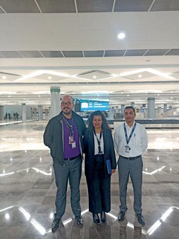 Durante el vuelo, el staff de Volaris rega ló playeras de la marca y boletos para los pasajeros. Una vez en el aeropuerto fuimos recibidos por Manuel Ojeda, Jefe de Ae ropuerto de Volaris, Ivonne Zárate, Subdi rectora de Servicios Aeroportuarios y Com plementarios del AIFA, y el Maestro Diego Parra, Coordinador de Servicios Aeropor tuarios y quien amablemente nos dio el re corrido por las instalaciones del inmueble.