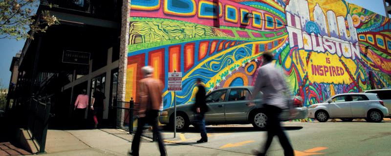 El popular mural creado por el artista urbano Mario E. Figue roa, Jr., también conocido como GONZO247, es imperdible para las fotografías, si estás explorando el centro de la ciudad. Ubicado en el centro, en la esquina de Preston y Travis, frente al Market Square, el mural fue presentado en 2013 y muestra el horizonte de Houston en medio de un colorido fondo.