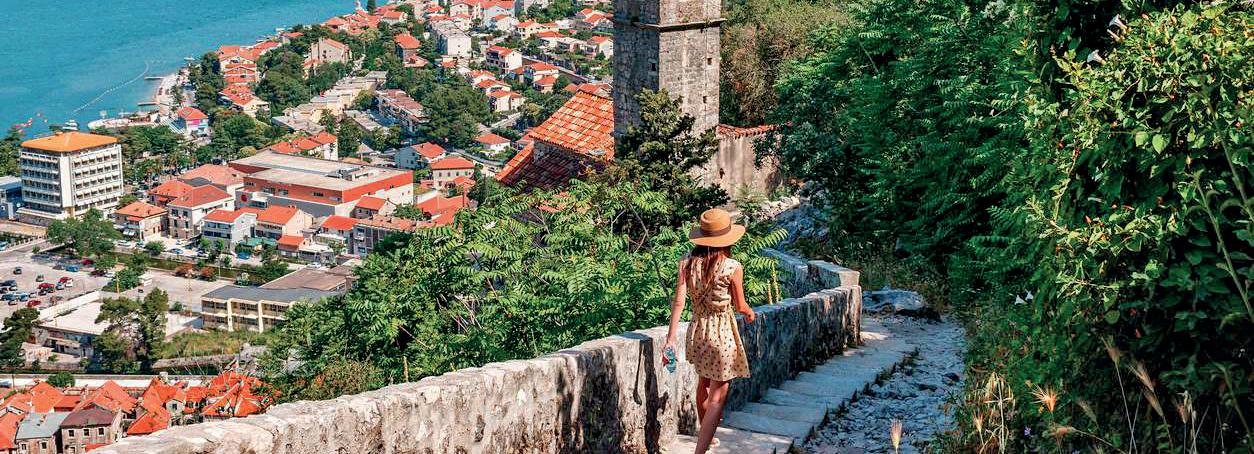 Blanca y pulcra Kotor es una ciudad con más de dos mil años de antigüedad, rodeada por una muralla interminable que sube por encima de uno