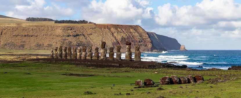 Esta reserva arqueológica se encuentra en la isla habitada más remota del mundo: Pascua, en la región de la Polinesia, anexada a Chile desde 1888. Su territorio combina praderas, acantilados y playas, donde se erigen los famosos moáis, colosales estatuas antropomorfas de piedra volcánica.