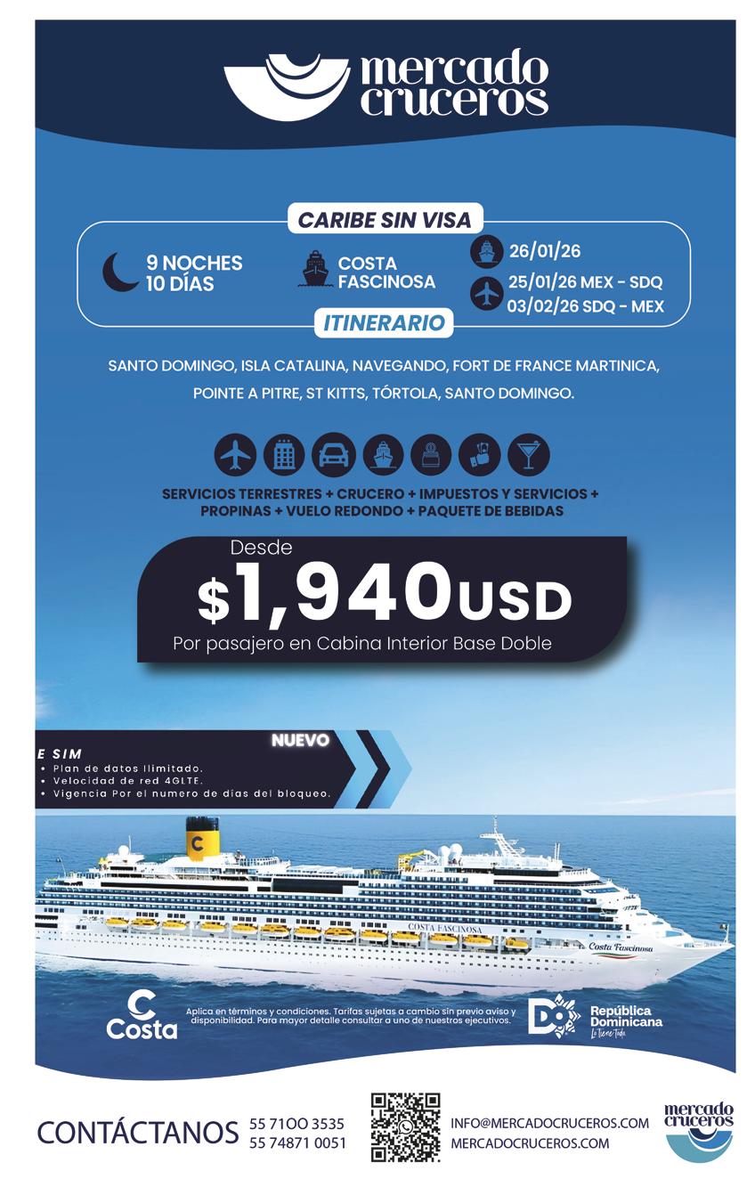 transparencia como pilares diferenciales. Más del 50% de las ventas de cruceros por parte de agencias convencionales en México se realizan a través de ellas, reforzando la relevancia de su modelo de negocio.
