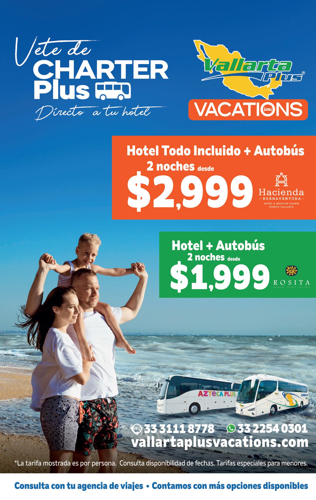 Como líder en este nuevo rubro del Grupo, Martín nos comparte que básicamente los servicios de Vallarta Plus Vacations están enfocados a ofrecer y confeccionar paquetes turísticos o vacacionales todo incluido a diversos destinos, como los son: Puerto Vallarta, Nuevo Vallarta, Bucerías, Rincón de Guayabitos, Sayulita, Tepic, Tequila, Guadalajara y próximamente San Blas y Santa María del Oro. Estos paquetes incluyen transporte en AUTOBUSES modernos y ecológicos, alojamiento en hoteles seleccionados, y una amplia gama de tours y actividades, distinguiéndose por ofrecer un servicio de alta calidad, enfocado en la comodidad y seguridad de los pasajeros.