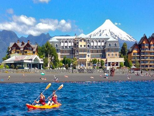 Pero este pueblecito se destaca también por ser el balneario lacustre más importante de Chile con una gran actividad en la época de verano (que recordemos en el Cono Sur es en los meses de diciembre, enero y febrero) y ofrece a los visitantes múltiples actividades como, excursionismo, piragüismo , tirolesa, kayak, cabalgatas, avistamiento de aves y pesca deportiva, así como otros atractivos que complementan sus playas sobre el lago, como son los centros termales y de esquí en el invierno, los parques nacionales, aromáticos bosques de fagáceas y coníferas, así como una gran cantidad de ríos muy caudalosos para la práctica del “rafting”, y por todo esto se le conoce localmente como “La capital del turismo de aventura”.