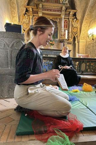 Vi synger sange og siger remser v/ sanger og fløjtenist Linnéa Villén, som også står for kirkens babysalmesang. Præsten Pia holder en lille prædiken helt i børnehøjde.